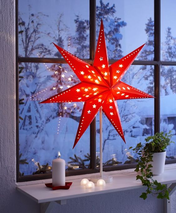 À propos, il n'est pas du tout nécessaire d'acquérir des lumières classiques. Jetez un coup d'œil à d'autres formes plus intéressantes. Par exemple, des étoiles ou de petits arbres de Noël sous la forme d'une guirlande sont d'une beauté incroyable. Ils peuvent être suspendus au-dessus de la fenêtre, créant ainsi une imitation du rideau.