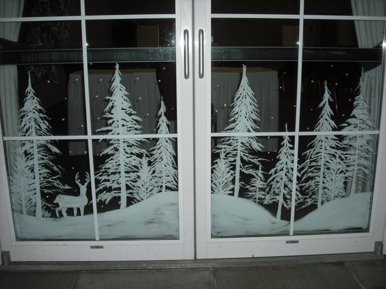 Il convient de noter que certaines personnes préfèrent encore peindre le verre et les fenêtres pour leurs vacances. Et c'est vraiment beau, parce que la capacité de dessiner n'est pas donnée à tout le monde, donc les peintures sont toujours incroyablement belles. Si vous le souhaitez, vous pouvez utiliser des tons de beige et de blanc pour exprimer un véritable conte d’hiver.