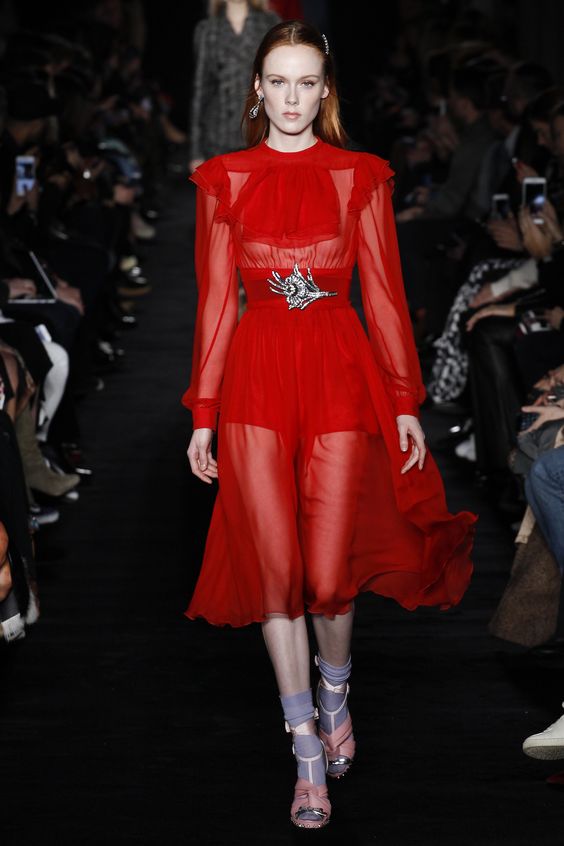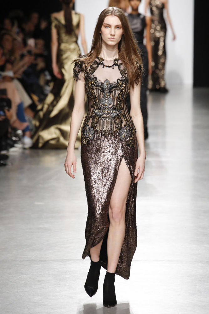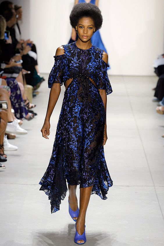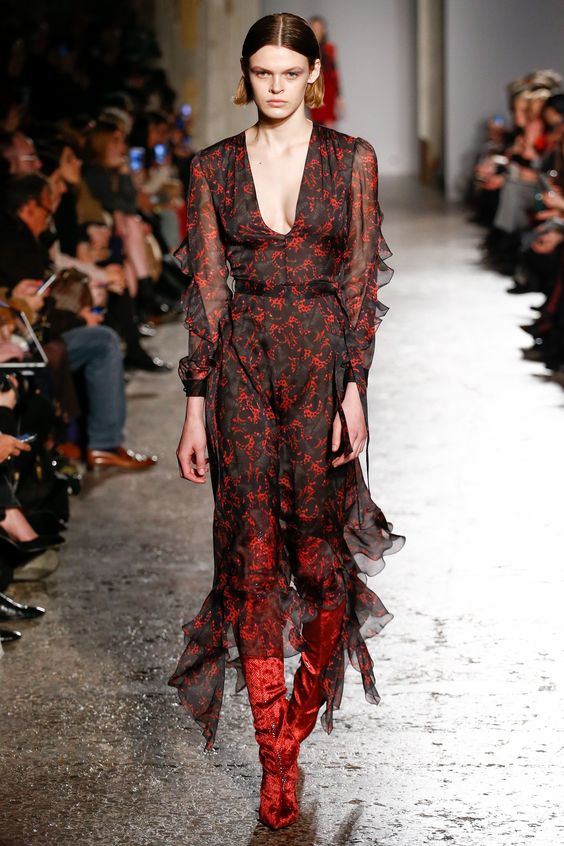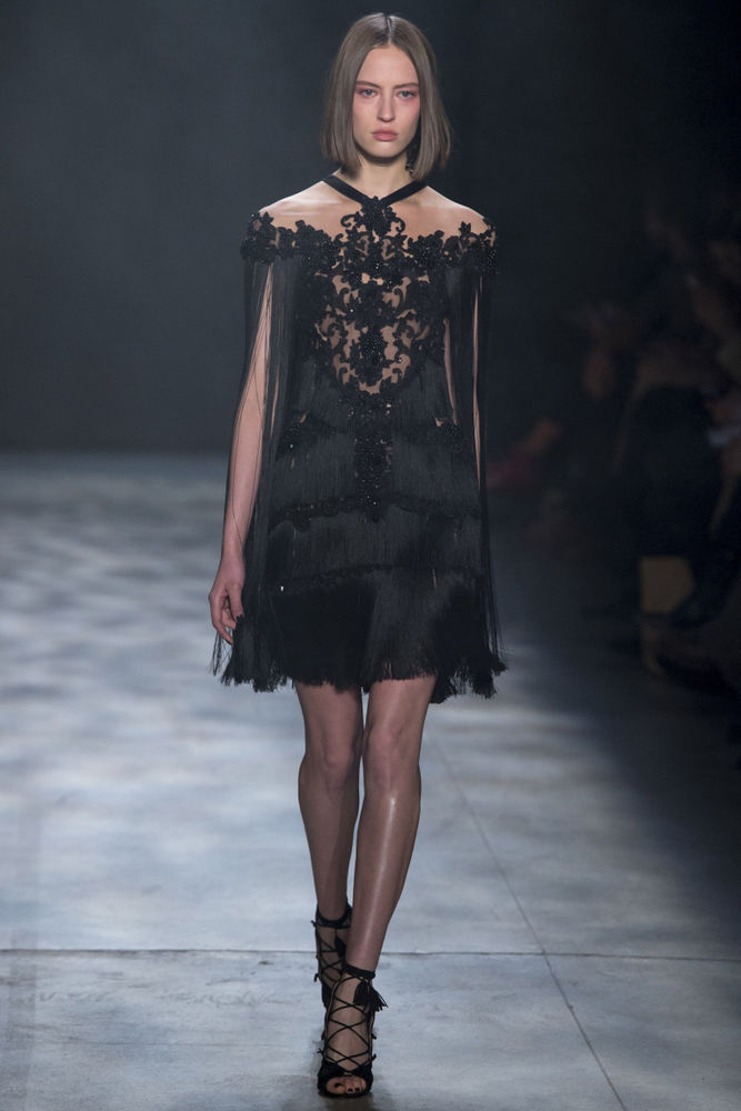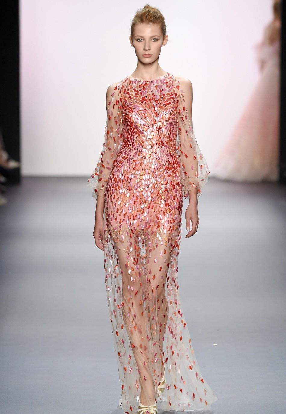 Les nouvelles collections de robes en organza transparent de Marchesa sont remplies de fleurs imprimées. Malgré la saison froide, la robe noire translucide du Nouvel An avec des ornements floraux est incroyablement belle.