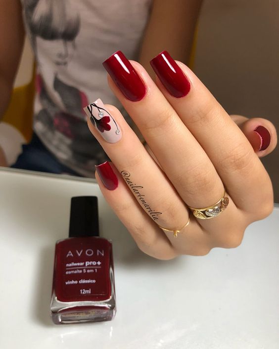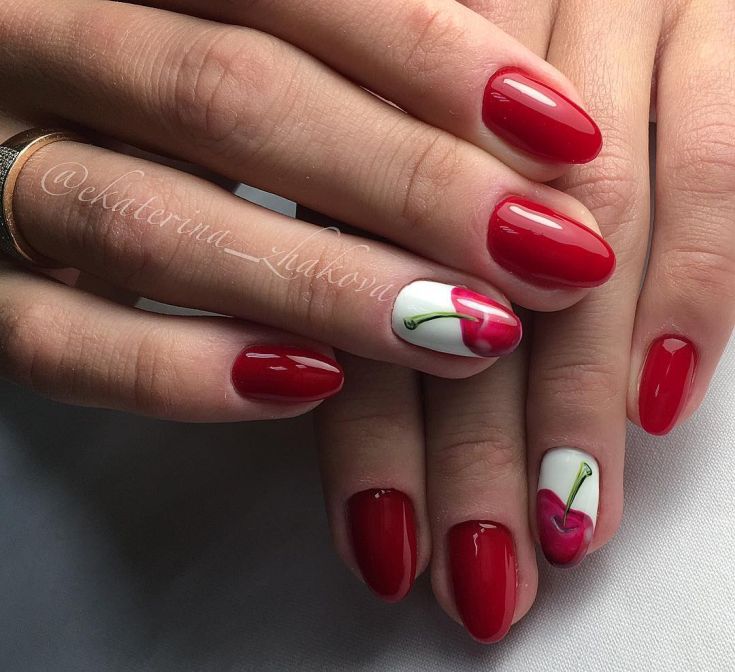 La manucure dans de jolis tons de cerises est une excellente option pour créer un ongle d’été ou d’hiver froid, festif et quotidien.