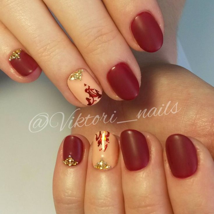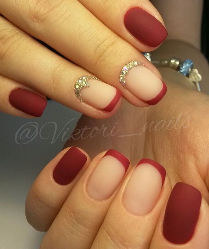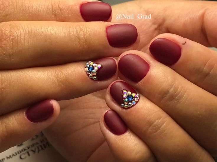 Dans la conception des ongles modernes, l’une des manucures les plus élégantes et les plus festives est celle du mat. Une manucure cerise mate est un véritable chef-d’œuvre de luxe. La manucure Cerise, faite dans des couleurs mates, a fière allure sans décor supplémentaire. Une telle manucure aux couleurs sombres convient parfaitement à la conception d'ongles courts et sera élégante, brillante et attrayante. Complétant le design des ongles en cerisier mat avec différents décors, motifs, strass, brillants ou un motif doré, vous recevrez une manucure de vacances originale.