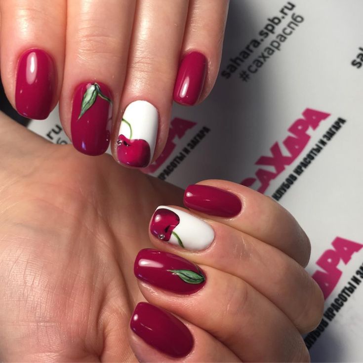 Sans aucun doute, la manucure de cerise est une belle conception des ongles autosuffisante. Une telle manucure peut être utilisée de manière indépendante, ou être diluée avec divers décors ou diversifiée avec des transitions de couleurs. Quelle sera votre image, à vous de choisir.