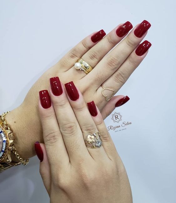 Le débordement de la finition brillante dans la conception des ongles a été et reste à la mode. Une manucure cerise brillante est particulièrement attrayante. Le jeu de gloss met en valeur la beauté, la polyvalence et la richesse des nuances de rouge.
