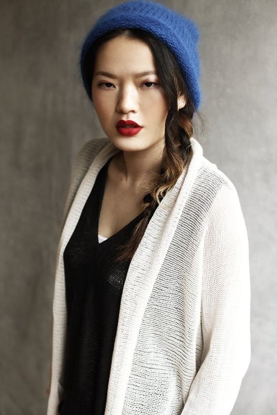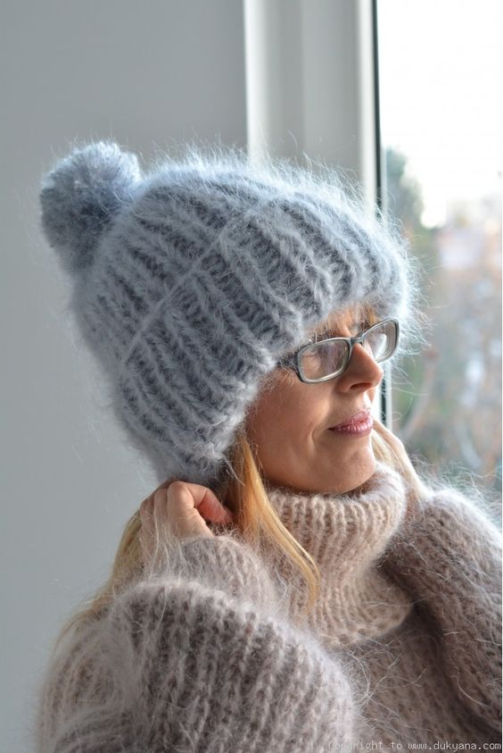 La laine douce et moelleuse est considérée comme le fil le plus chaud et le plus confortable pour tricoter un chapeau à la mode. Dans un produit fabriqué avec un tel fil, il sera très confortable même avec un gel très intense. De fines fibres de laine entourent la casquette d'un halo volumineux, de sorte qu'un tel chapeau s'intègre élégamment à un style féminin et délicat. Les jeunes filles auront certainement besoin d'un accessoire d'Angora. Il mettra l'accent sur leur jeunesse et la fraîcheur du visage, surtout si vous choisissez des tons de lit. Pour les femmes d'âge moyen, un tel chapeau deviendra un assistant de rajeunissement. Un accessoire Angora masquera visuellement plusieurs années de plus sur le visage et soulagera facilement le poids lourd d’une veste en duvet ou d’un manteau de fourrure. Cette année, les casquettes aux côtés suffisamment larges sont les plus populaires.