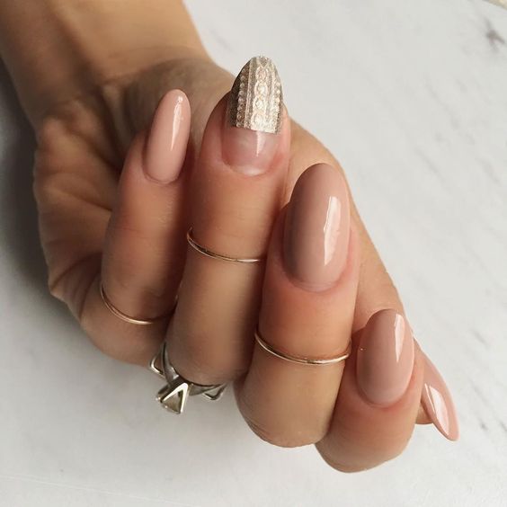 La conception classique d'une manucure en forme de tricot est le plus souvent faite dans des tons de lit semblables à ceux du nu. Cette option de manucure est très douce et attrayante. Vous pouvez appliquer le dessin sur un ou plusieurs clous. Appliqué à tous les ongles, alternez le contour de l'image pour obtenir un effet plus raffiné. Les mailles tricotées au milieu ou au-dessus du souci ont fière allure. Pour un style classique, choisissez des tons de blanc, gris, beige ou bordeaux.