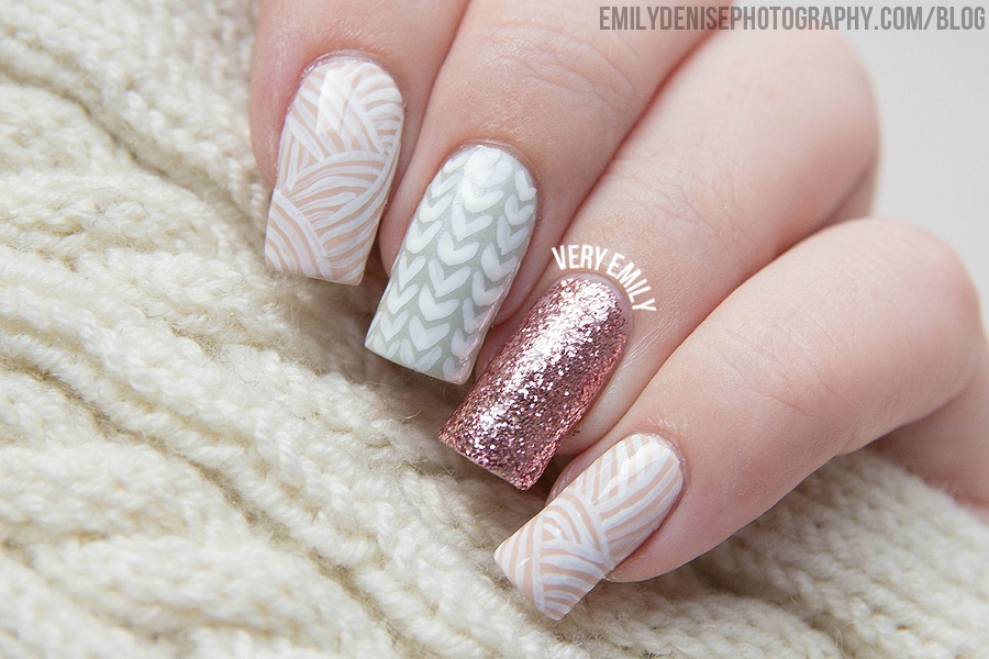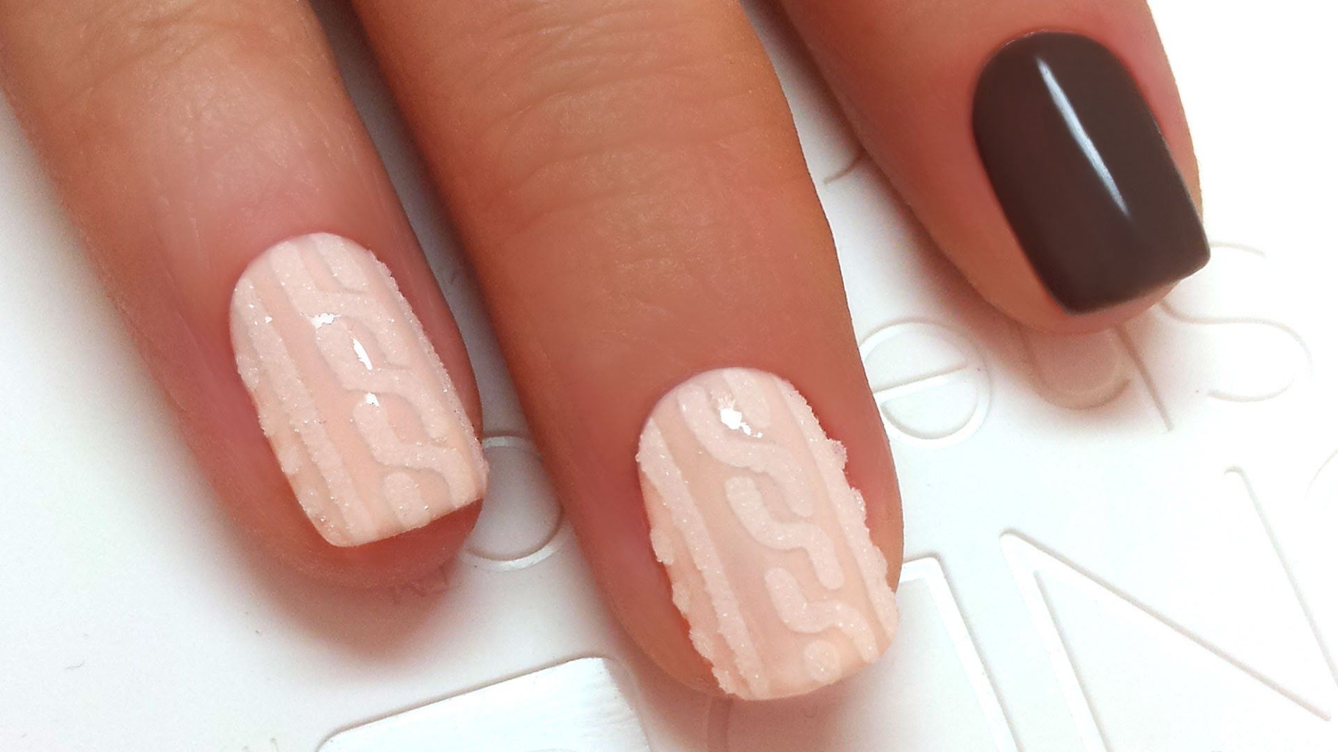 Manucure tricotée avec du sable ou de la poudre.