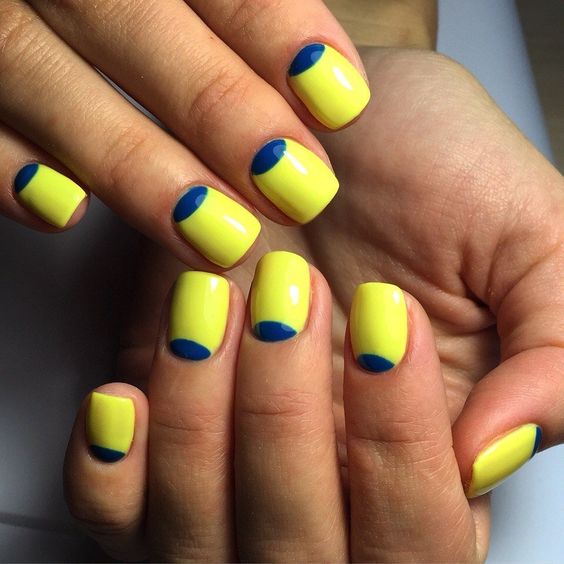 Assez souvent, les filles choisissent une teinte blanche et jaune pour créer une manucure à la française ou au clair de lune. Dans cette performance, il a l'air plus féminin et en même temps enjoué.