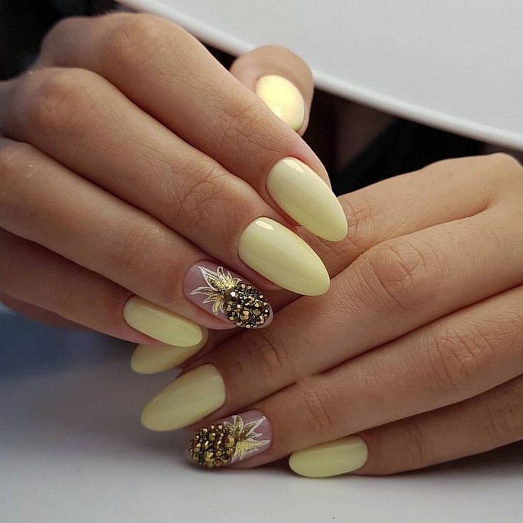 Afin de compléter la manucure jaune, vous devez utiliser un décor supplémentaire. Cela vous permettra de réaliser un design incroyable pour diverses tenues et événements. En 2026, les variétés de décor les plus en vogue sont: