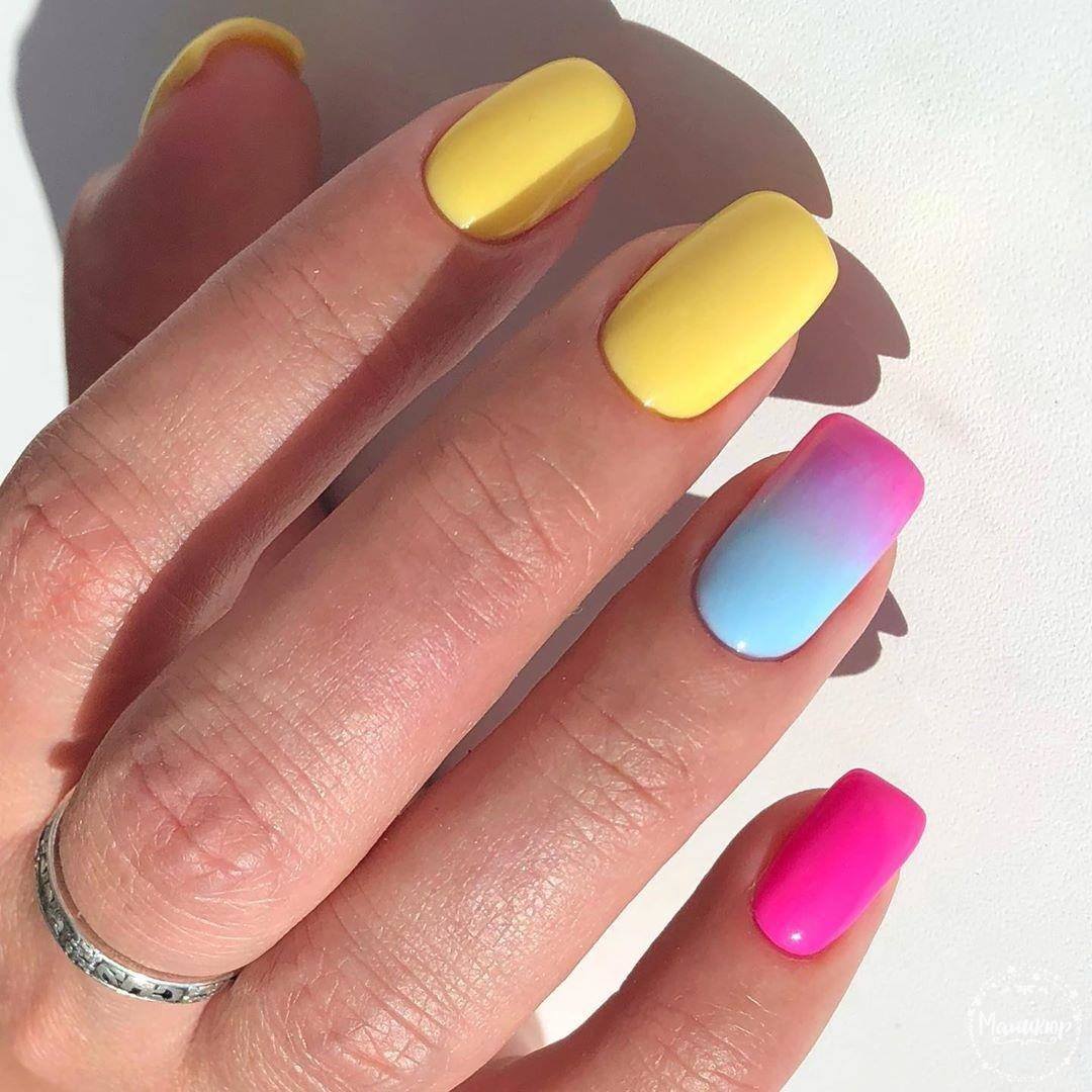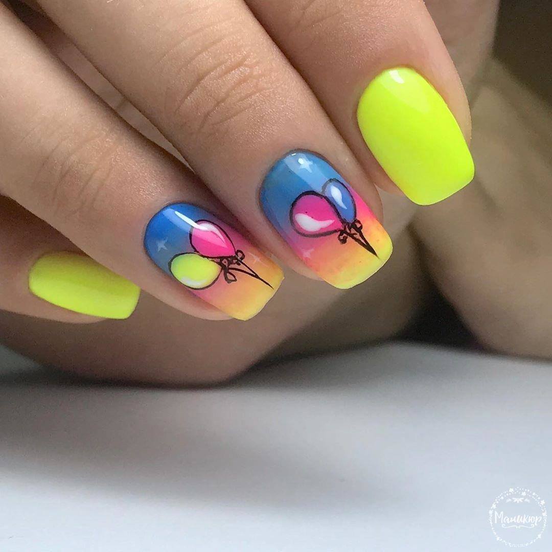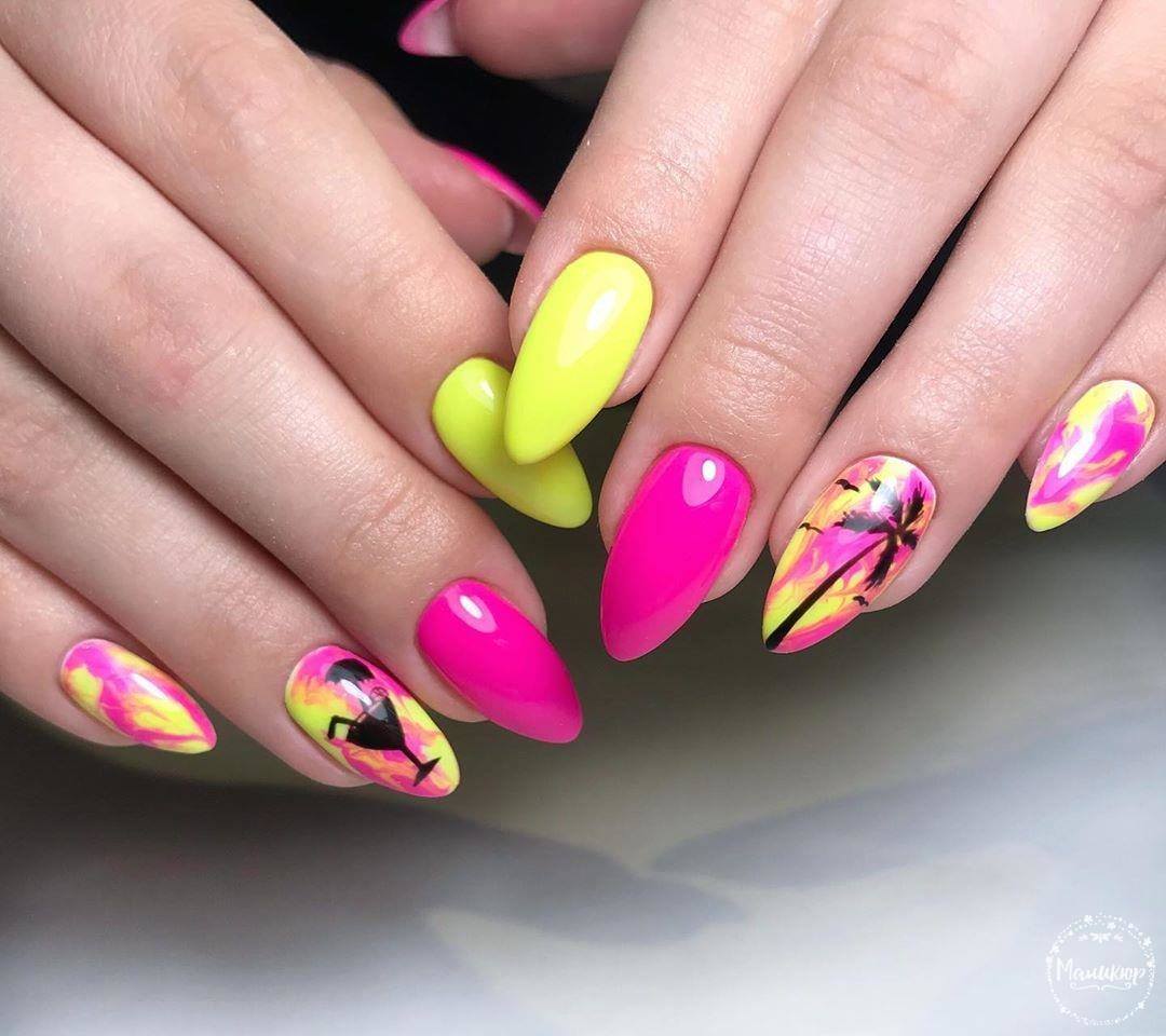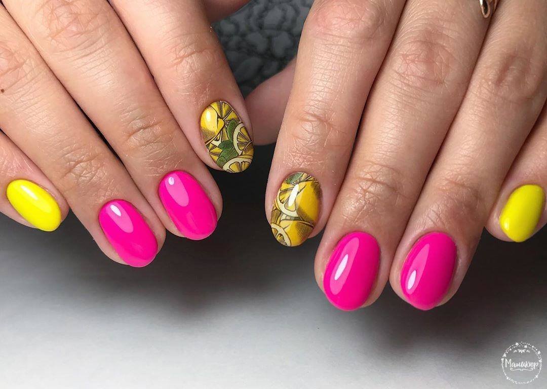 La combinaison de plusieurs couleurs dans une manucure est particulièrement utile en été. Une teinte jaune juteuse et jaune vif peut parfaitement remonter le moral et faire face à la tristesse. La combinaison de manucure jaune-vert convient à toutes les longueurs et formes des ongles. La gradation des tons et des nuances de ces couleurs est incroyablement large. Il comprend des couleurs telles que le vert clair, le citron, les marais, le beige, ainsi que des nuances plus douces et saturées. En ce qui concerne les méthodes de conception, vous pouvez appliquer n'importe quoi: perles, dessins, étincelles, motifs ou strass. Choisissez un décor à votre goût!