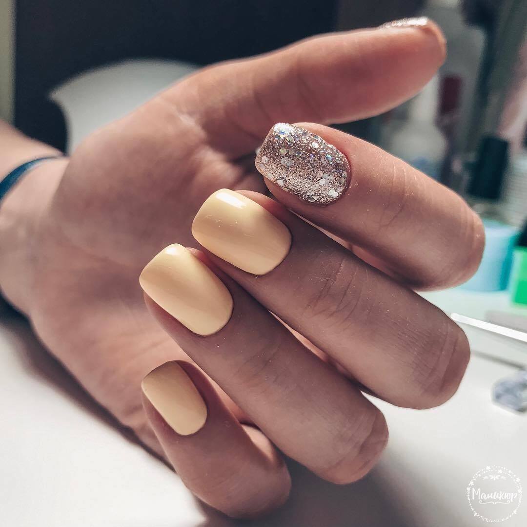 - Étincelles et poudre. Si la manucure jaune semble une conception trop simple pour le nail art, diversifiez-la avec des étincelles et de la poudre. Il y a plusieurs façons d'utiliser ce décor, il suffit de rêver et une manucure merveilleuse décorera les ongles de la fille.