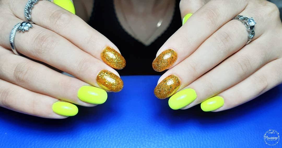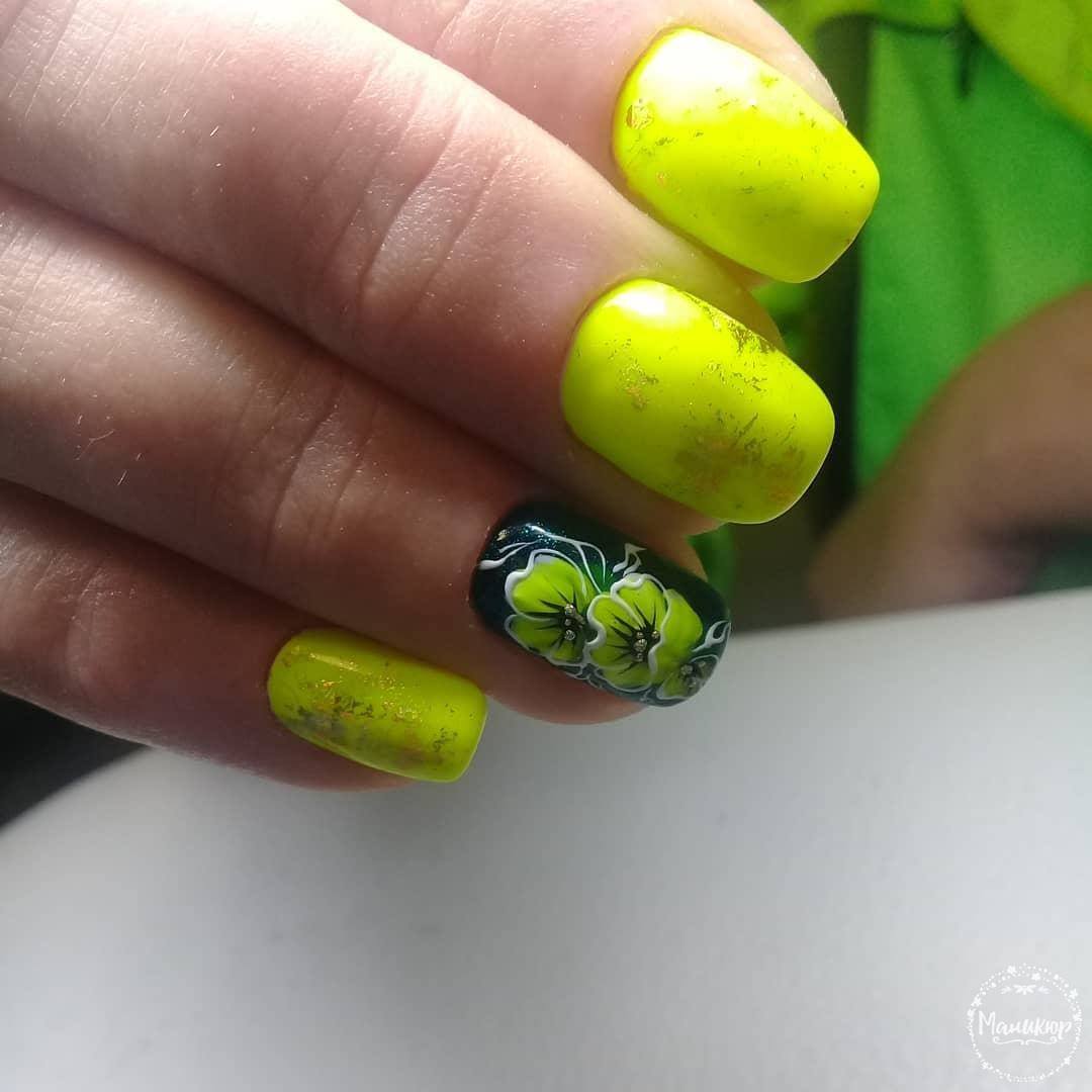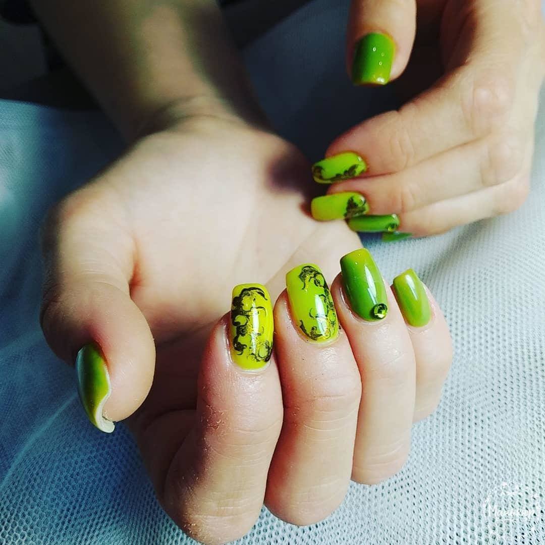 - Manucure jaune avec vert