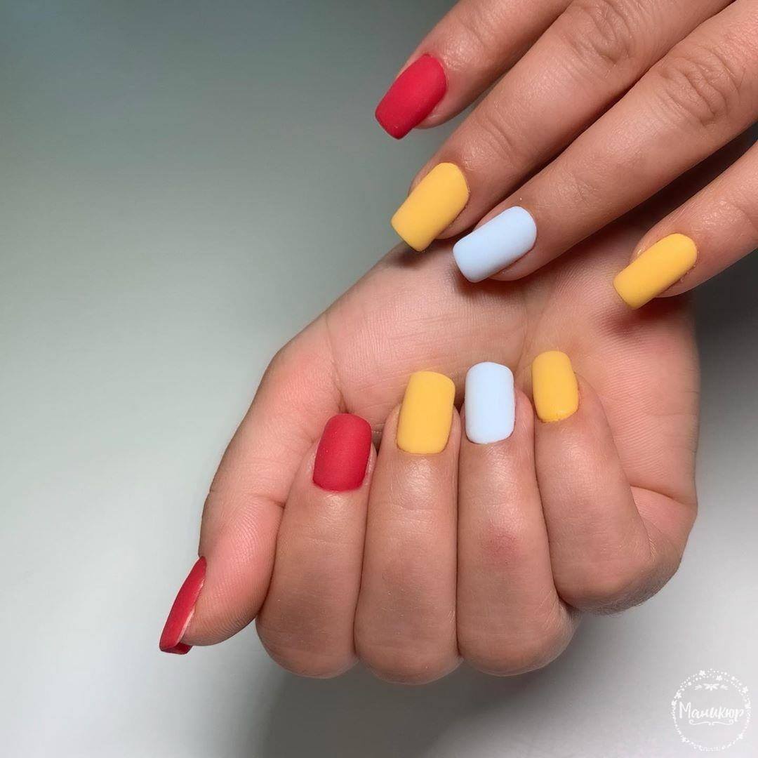 Lorsque vous choisissez une manucure pour un rendez-vous romantique ou un travail quotidien, vous devez bien sûr privilégier la combinaison rouge-jaune originale et luxueuse. Une telle manucure ne passera jamais inaperçue et attirera de nombreux regards. Vous pouvez organiser les couleurs de différentes manières, par exemple, en utilisant la technique d'estampage, des motifs, une manucure à la française ou une lune.