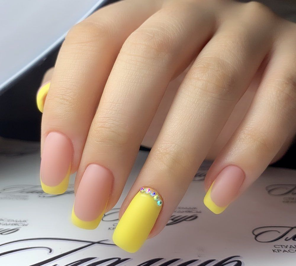 - Kamifubuki, strass. Un tel ajout est aujourd'hui considéré comme une partie intégrante de toute manucure. Les strass sont parfaits pour toutes les nuances de jaune, le plus important est de choisir le bon ton pour le caillou. Il convient de prêter attention aux strass de différentes tailles. En 2026, c'est incroyablement à la mode. Avec l'aide de Kamifubuki, vous pouvez créer une manucure de vacances merveilleuse. Vous pouvez organiser des bijoux de différentes manières, tout dépend du désir de la fille elle-même.