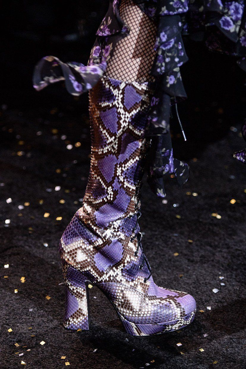 Nous avons discuté de nouvelles idées pour les vêtements de dessus. À présent, il vaut la peine de consacrer du temps aux chaussures modernes et à la mode pour la saison automne-hiver. Après tout, c'est exactement l'élément de l'oignon femelle qui est capable de donner un certain zeste et de compléter l'image. Cette saison, les bottes, bottes et bottines à imprimé animalier occupent une place de choix. Ainsi, de nombreuses beautés pourront diluer leur image ennuyeuse avec un élément brillant et unique. De plus, l’impression ne doit pas couvrir complètement toutes les chaussures. Assez de quelques sangles ou sections individuelles avec ce design. Également à la saison froide, les chaussures contenant des couleurs métalliques sont très populaires. Cette version de la garde-robe des femmes est capable d'attirer toute l'attention de la société.Des bottes métalliques s’harmoniseront parfaitement à une robe noire et à un manteau foncé. La grande tendance des collections automne-hiver 2025-2026 est celle de la haute chaussure. Une attention particulière est accordée à la hauteur des bottes, atteignant le niveau des hanches. Cette option de chaussure est idéale pour les filles longues et minces qui peuvent se permettre de porter une robe courte. Lors de la conception de telles bottes, le cuir et le velours sont autorisés. Les chaussures atteignant la hauteur des genoux se marient bien avec un jean moulant et un manteau de fourrure court.