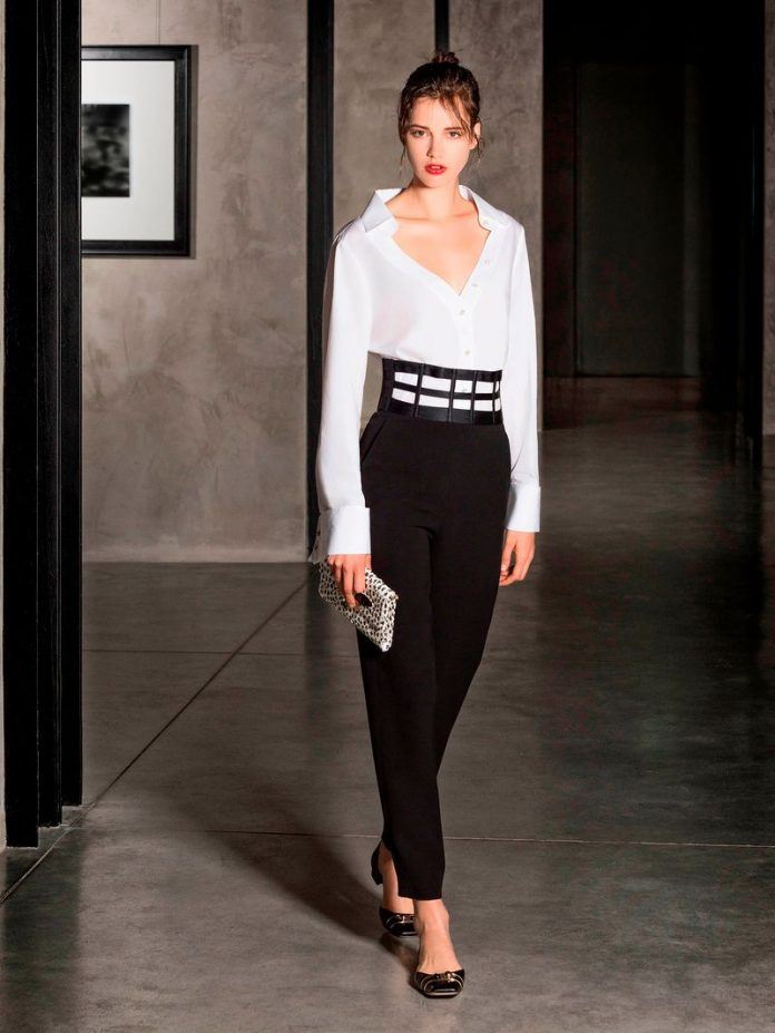 Les blouses dans un style sobre - c'est la meilleure option pour un arc de bureau qui donne à une fille une féminité et une attractivité. La blouse ne doit pas nécessairement être blanche ou noire. De plus, les options d'impression ne sont pas exclues. Cette année, les stylistes nous ravissent avec une grande variété de variations de couleurs de chemisiers avec des ajouts intéressants sous forme de broches attrayantes, qui sont parfaites pour le bureau en combinaison avec une veste stricte. Ces chemisiers se combinent à merveille avec les éléments suivants de la garde-robe: un jean skinny, un pantalon, une jupe de différentes coupes.