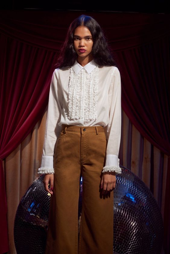 Si vous n'aimez pas les volants trop volumineux, jetez un coup d'œil sur les chemisiers à volants plus concis. Ces produits étaient présentés dans presque toutes les marques. Par conséquent, le choix du bon chemisier ne posera certainement pas de problèmes.