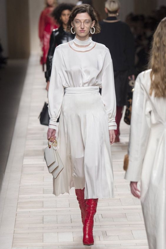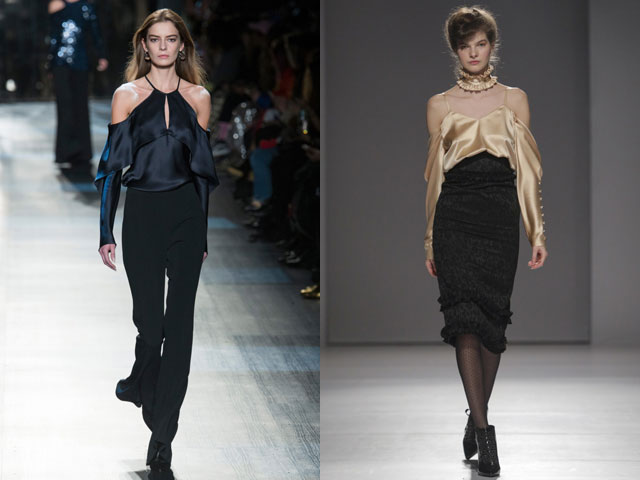 En automne-hiver, une blouse blanche sera utile. C'est une sorte de classique, toujours à la mode. Néanmoins, les concepteurs ont présenté des options plus originales. Par exemple, les chemisiers aux épaules ouvertes, avec un décor en forme de dentelle, de manches volumineuses ou de volants. Chacun d'eux a l'air intéressant et inhabituel.
