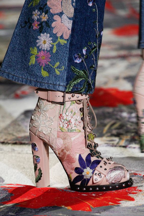 Les chaussures d'automne lumineuses, mais simples, occupent une place de choix dans les tendances de la mode de l'automne 2026. Mais pour les fashionistas qui ne sont pas à l'aise avec les chaussures plates, les créatrices proposent des bottes avec un décor différent. Les chaussures ornées de broderies lumineuses de créateur ou de bijoux brillants auront l’air très impressionnant et original à l’automne 2026. La tendance sera le kabuki, orné de pierres ou de lanières brillantes, ainsi que de broderies et de divers rivets. Ces chaussures aideront à créer un look élégant.
