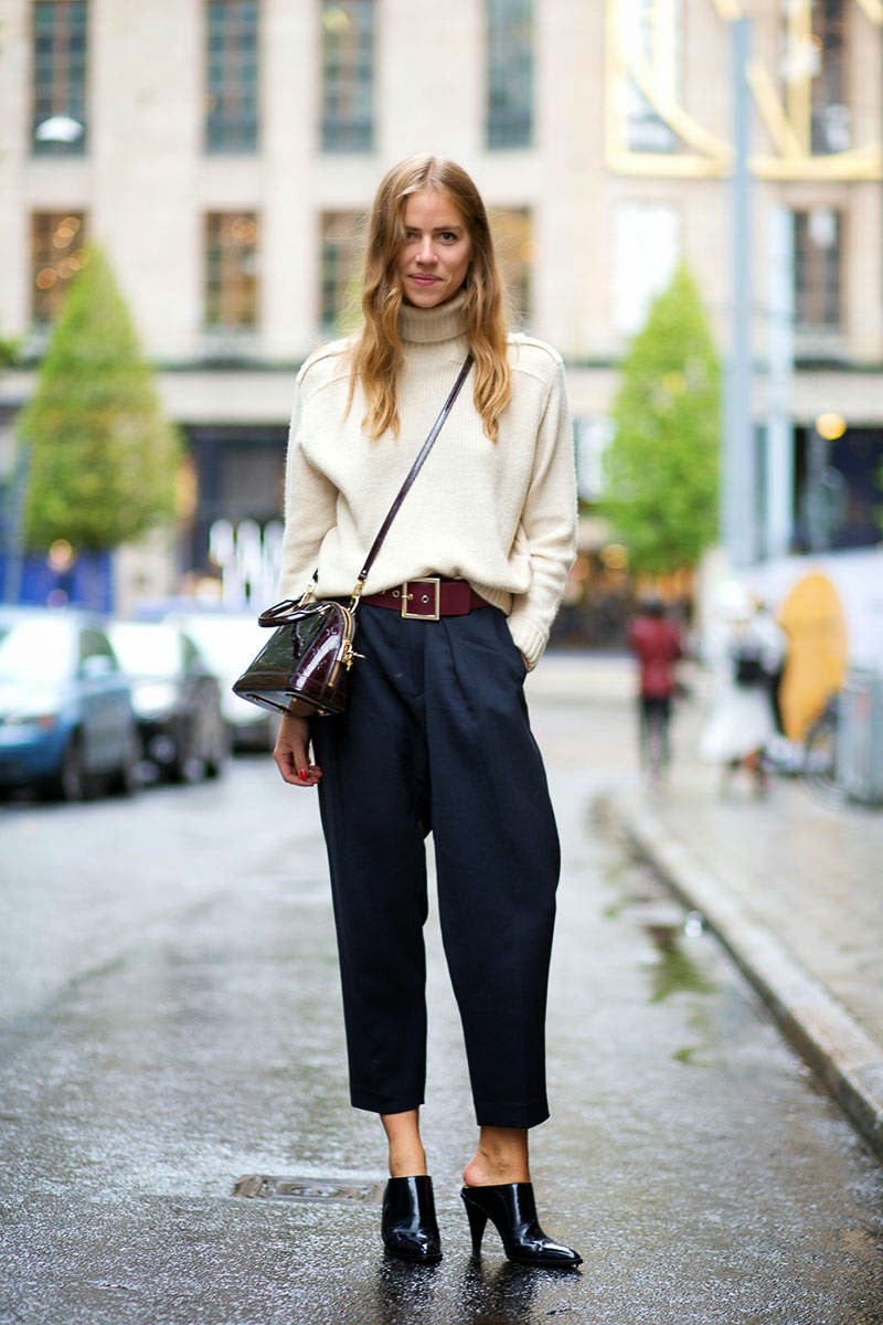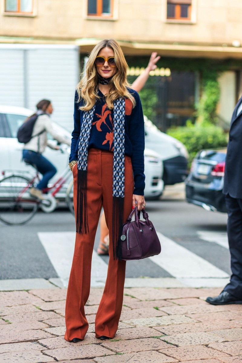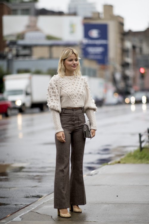 Les goûts esthétiques des années 80 gagnent rapidement en popularité, quelle que soit la saison. Les pantalons aux jambes évasées au niveau de la hanche occupent à nouveau les sommets de la mode Olympus. Le pantalon Palazzo a également séduit cette saison par sa diversité et son originalité. Ils sont appropriés lorsqu'ils sont combinés avec différents styles et images. Cette combinaison avec un sweat-shirt large niché dans un pantalon en tissu épais donnera un look d'enfer. Pour compléter une image aussi intéressante, vous pouvez utiliser, si vous le souhaitez, une élégante ceinture en cuir brut épais et des bottes à talon confortable. Si la jeune fille préfère le style strict au bureau, vous devez ajouter quelques chemises à col roulé et blanches surdimensionnées à votre garde-robe. Eh bien, pour une tenue de soirée, il vaut vraiment la peine d’augmenter la hauteur du talon et de diluer un pantalon évasé accrocheur avec un chemisier ou un haut en soie.