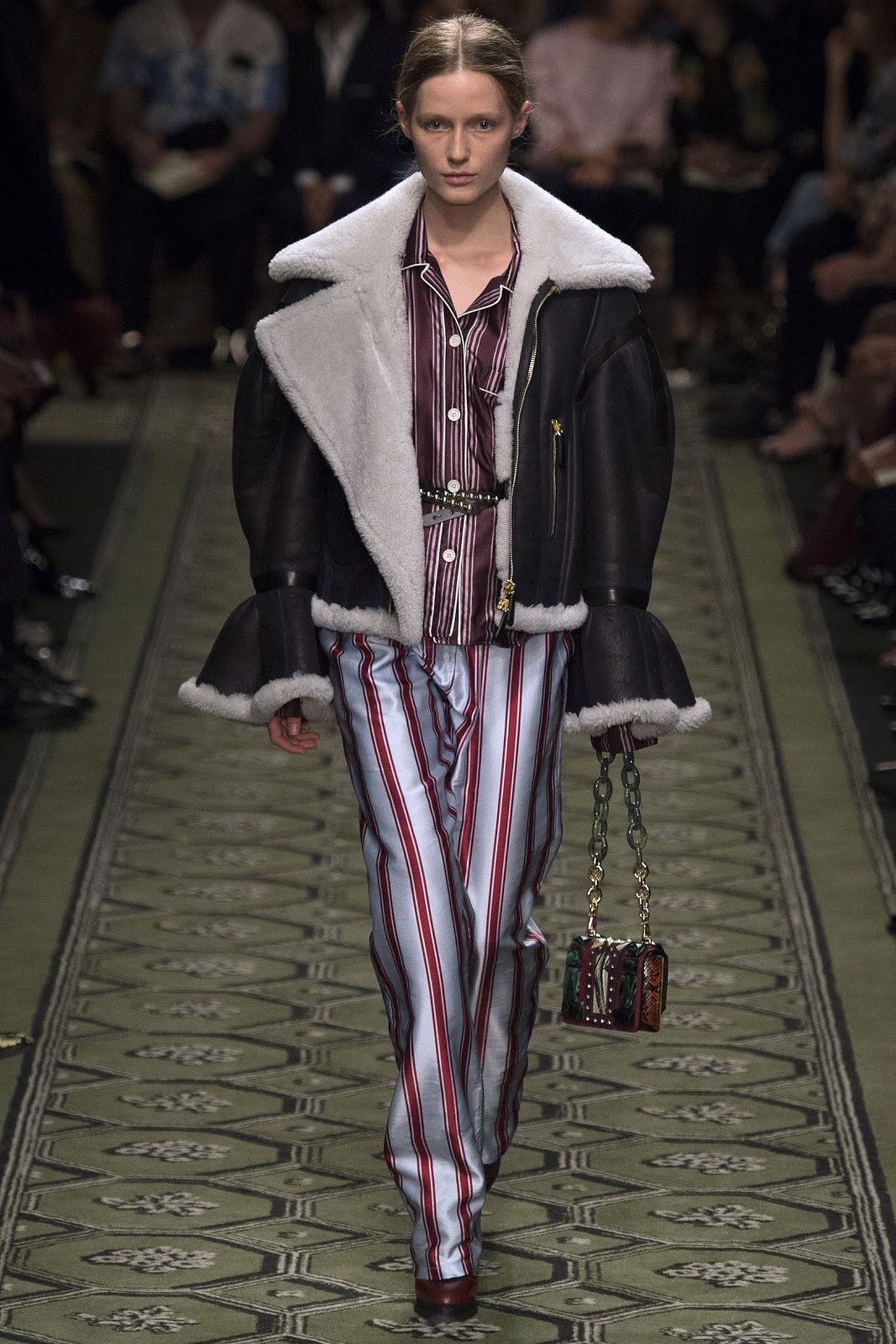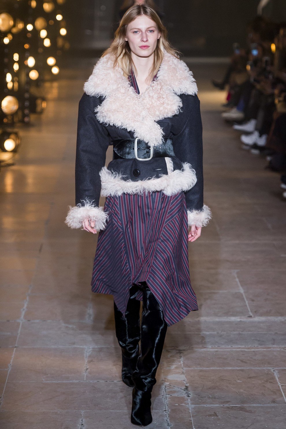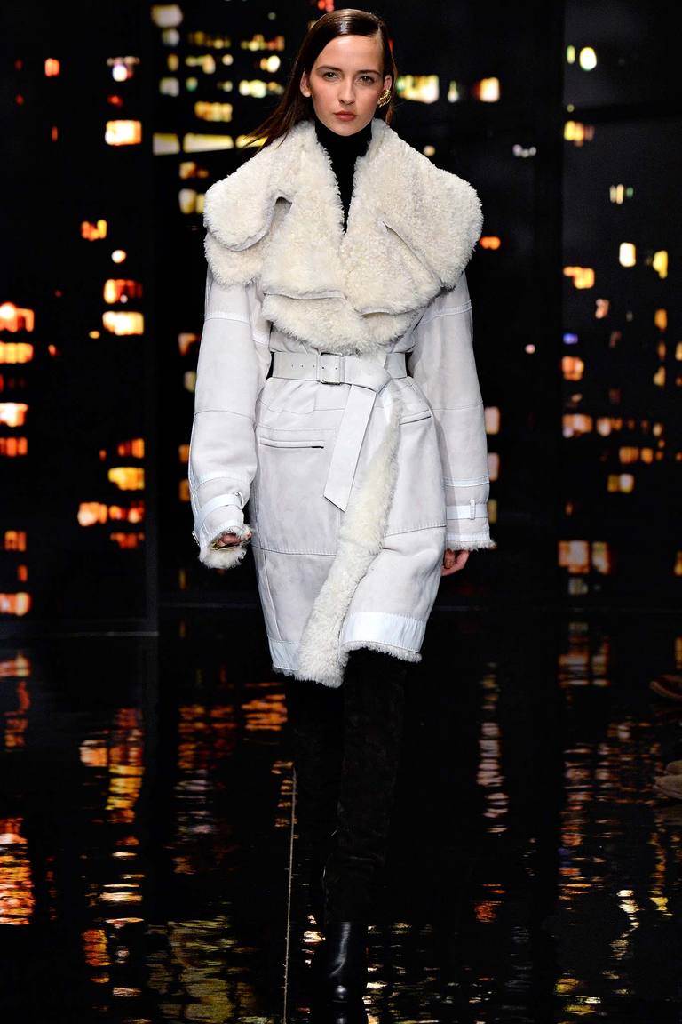 Veuillez noter que cette saison, la cagoule a perdu sa position à la mode, laissant ainsi la place à d’énormes cols en fourrure. Durant la saison automne-hiver, les manteaux en peau de mouton avec col sont universels et peuvent être combinés à différents styles.