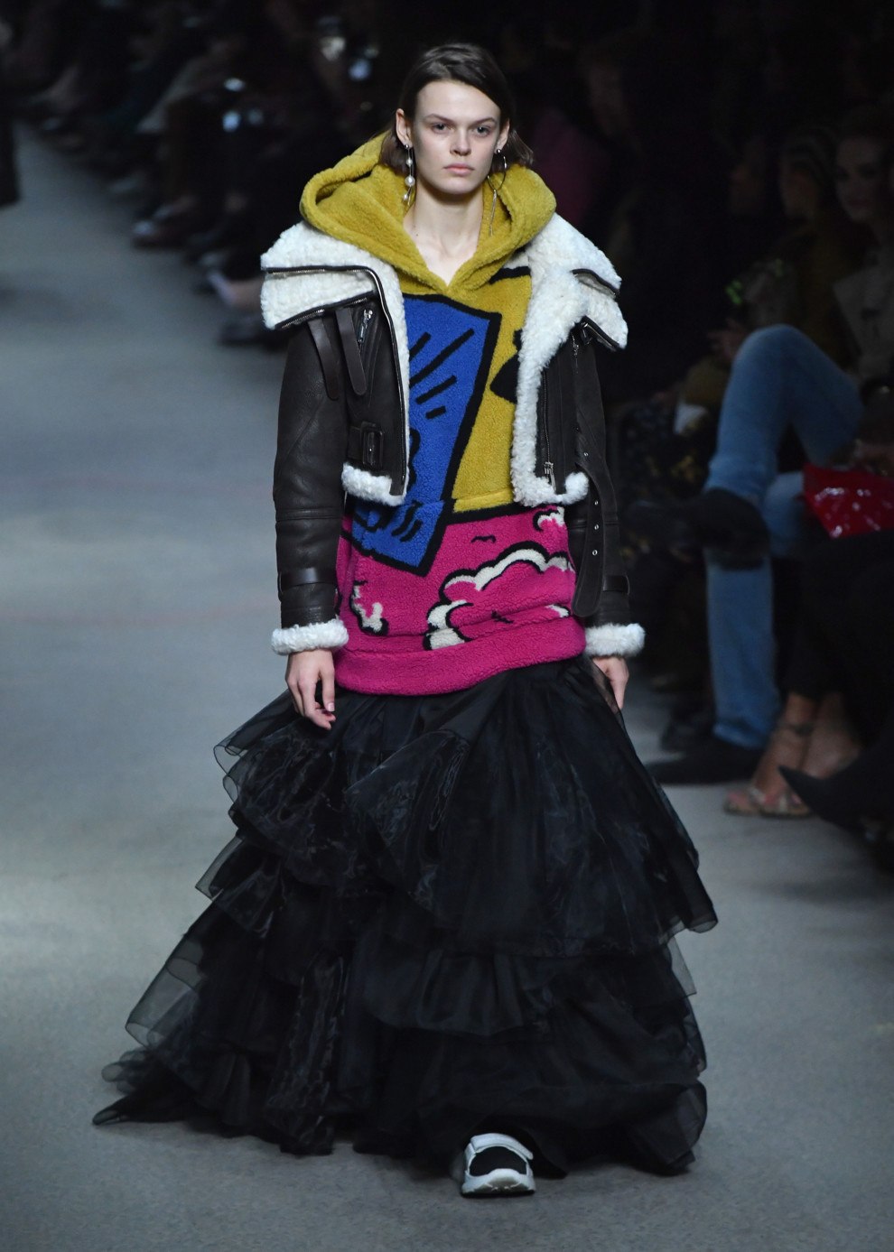 Pour les filles qui aiment le sport, la mode offre une autre surprise. Cette saison, vous pouvez porter des manteaux en peau de mouton non seulement avec des bottes et des bottes, mais également avec des baskets de sport, des pantalons de survêtement confortables et des caleçons.