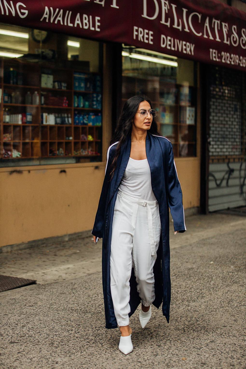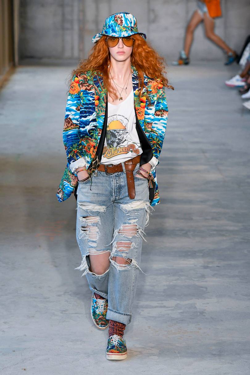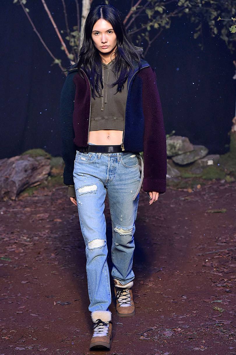 Le jean bleu est une option classique qui se marie bien avec un peignoir, des baskets de sport, des batilions et d’autres types de chaussures à semelle épaisse.