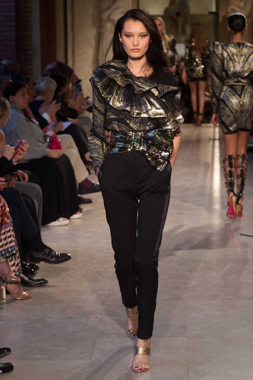Les pantalons Palazzo sont larges et spacieux. Le plus souvent, ils se trouvent en longueur raccourcie. Cette saison, les pantalons peuvent être en velours, en laine ou en maille épaisse et raffinée. Le pantalon Palazzo va bien à une blouse translucide claire et une veste moulante, une doudoune et un peignoir. Parmi les chaussures, il convient de choisir des chaussures compensées avec un nez pointu.