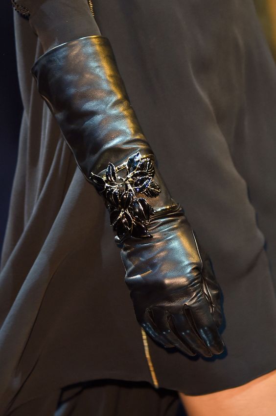 Les concepteurs conseillent de choisir des gants allongés en automne-hiver pour créer un look élégant - un modèle allant jusqu'au coude ou plus. De tels gants sont merveilleusement combinés avec des vêtements de dessus une ligne, avec une cloche à manches larges, sans manches et même avec un cocktail ou une robe de soirée sans manches.