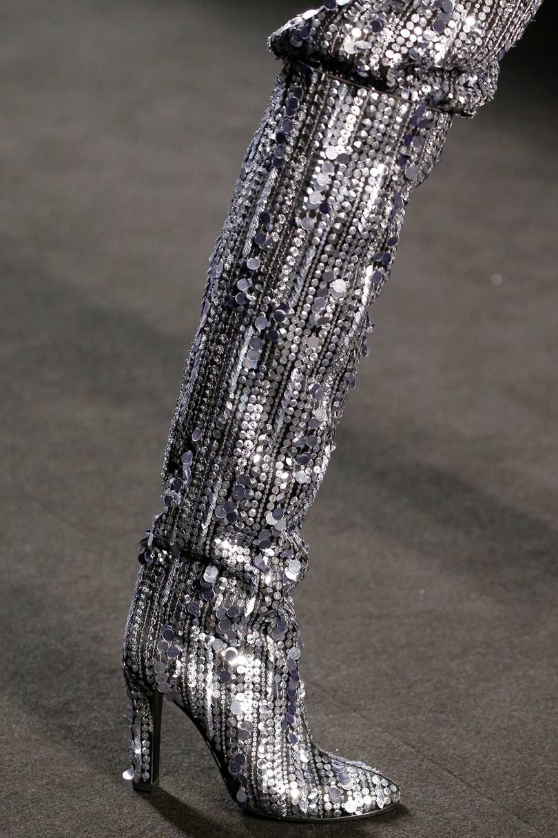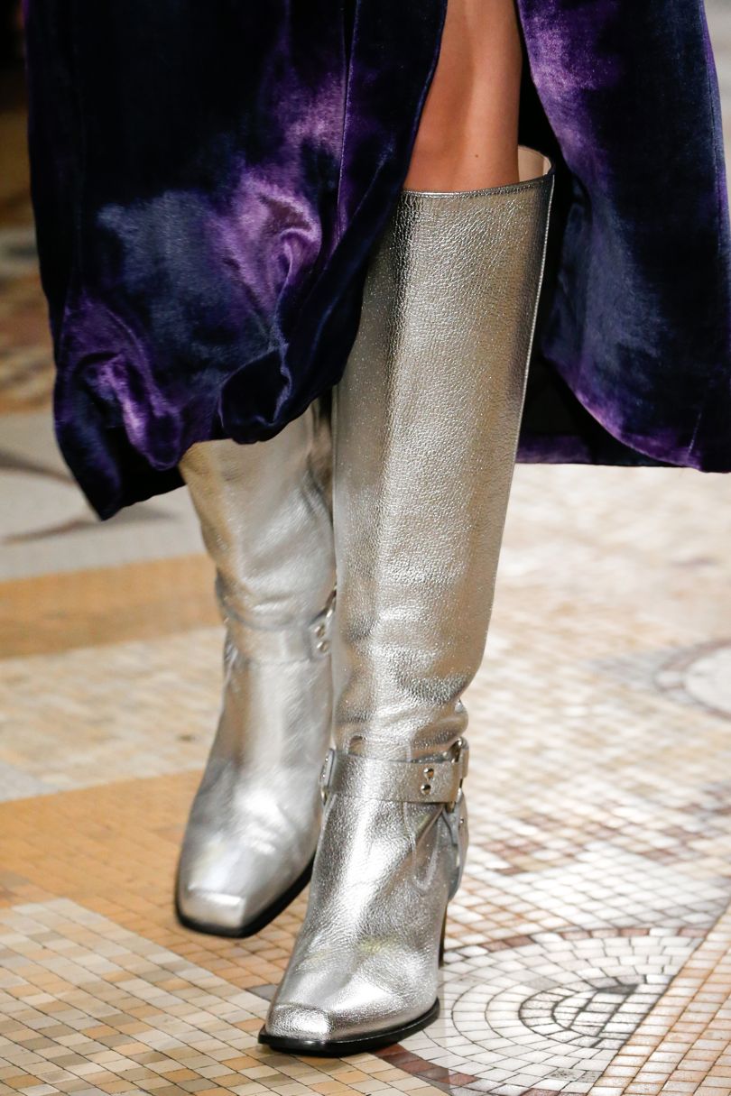Bottes avec un décor en métal est venu dans la saison automne-hiver de la saison printemps-été de 2026. Bientôt, les versions classiques du décor «métal» seront à la mode et populaires - ce sont des tons or ou argent. Cependant, en plus du décor classique en métal, les designers modernes ont proposé des teintes métalliques brillantes inattendues, ainsi que des bottes à la texture de débordement et de brillance de métal.