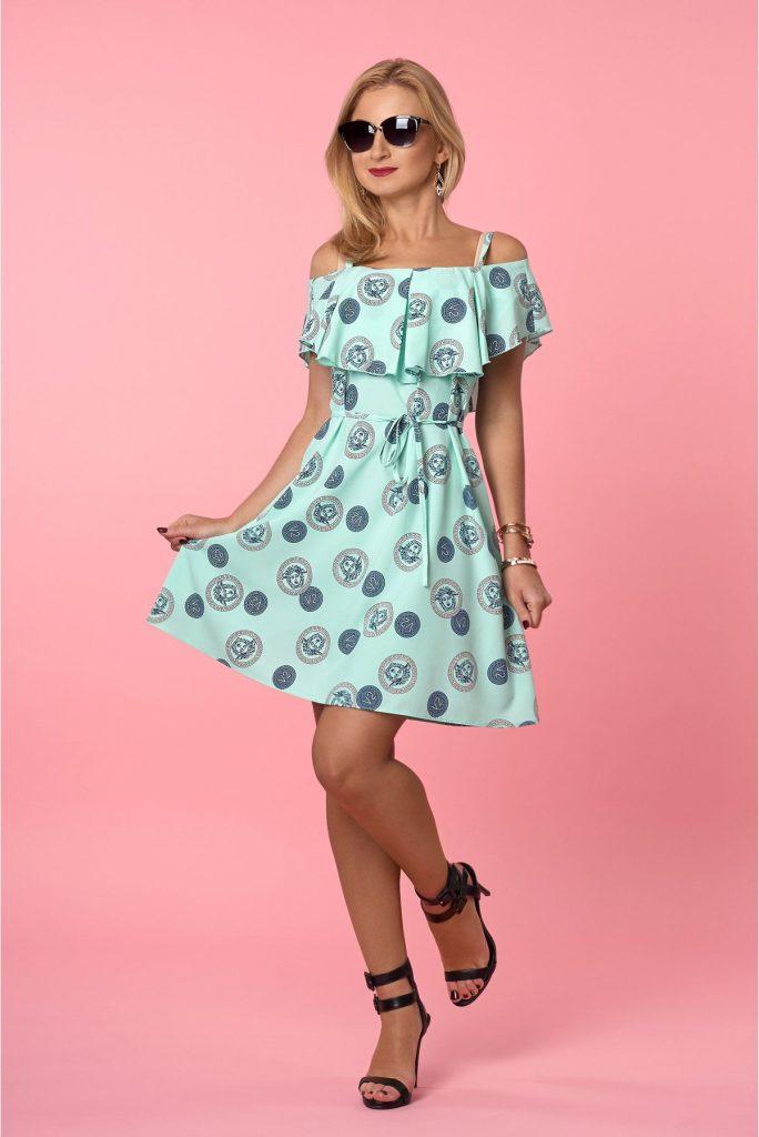 La solution idéale du couturier était la mise en place de robes d'été à épaules nues. Avec cette option de design, presque toutes les beautés lui donneront une image non seulement romantique, mais aussi franche. La zone des épaules ouverte se trouve sur les styles courts et longs d'une robe d'été. Pour compléter complètement l'image, les épaules nues sont décorées de volants et de plis.