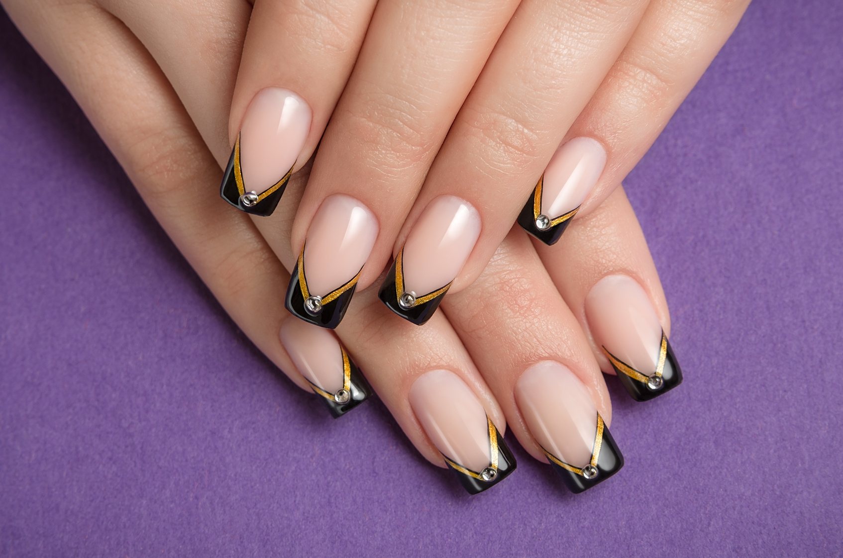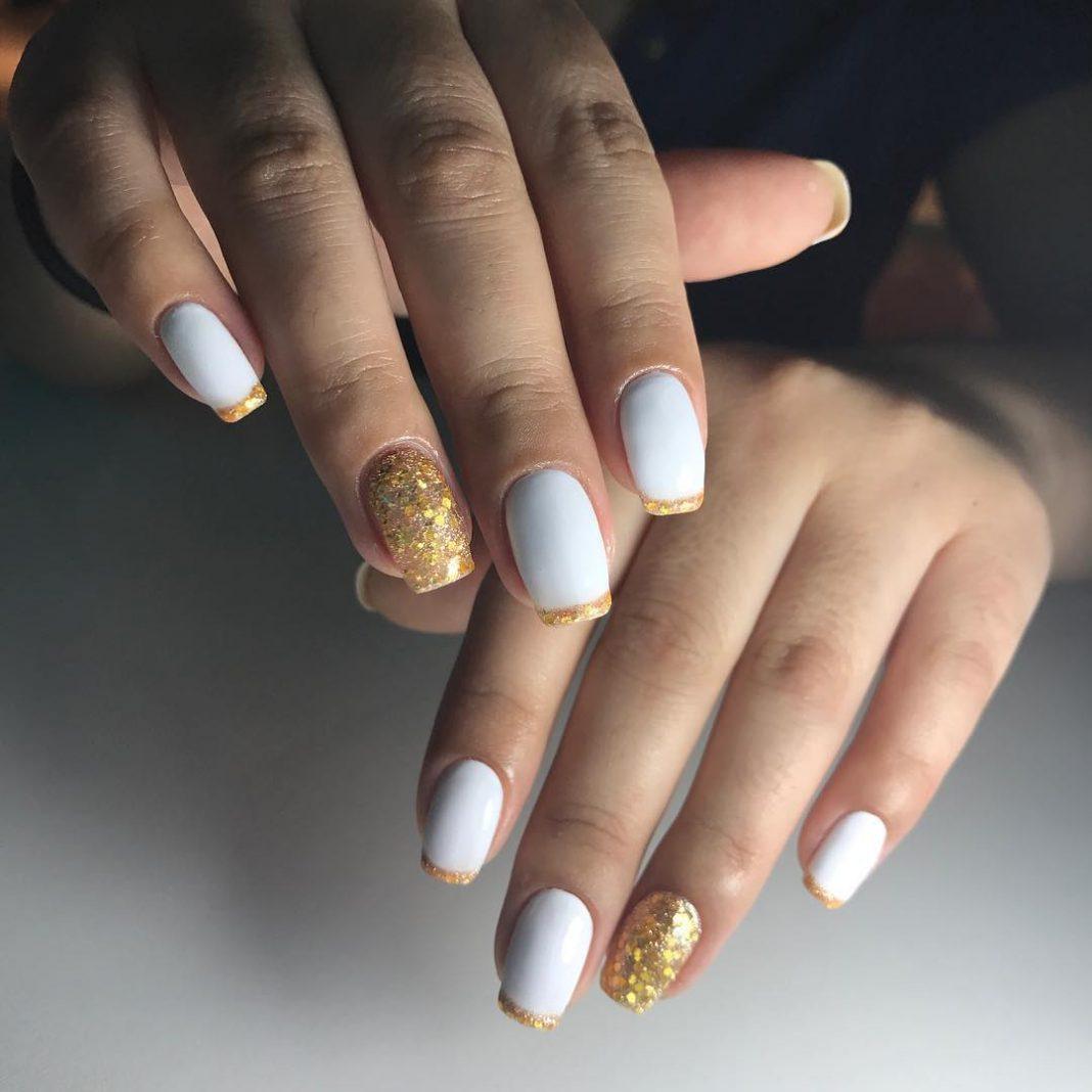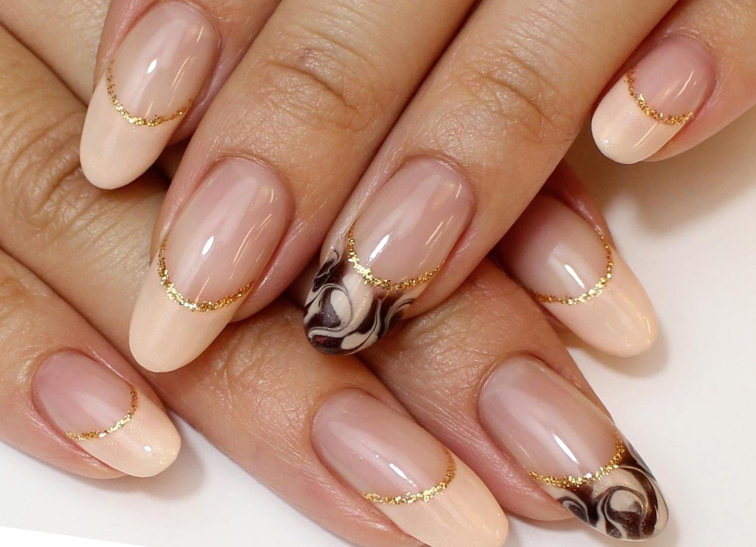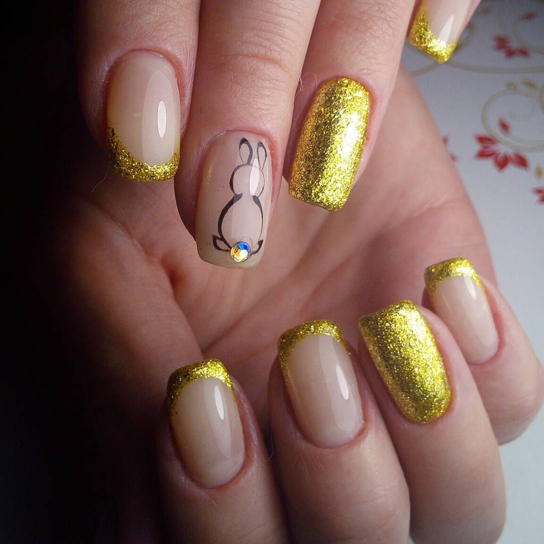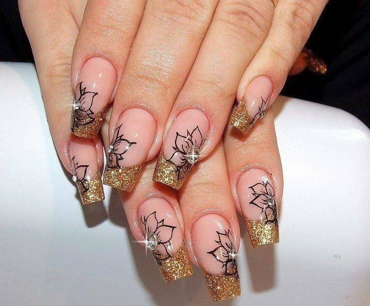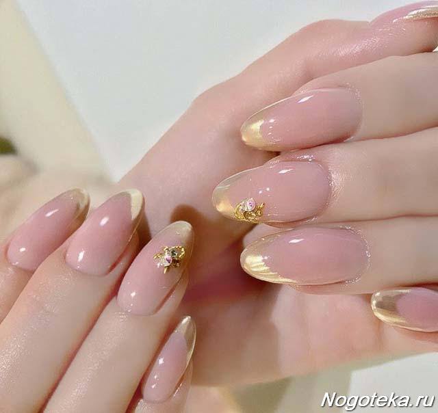 La plupart des représentants du sexe féminin ont un désir particulier de remplir la veste en or précisément pour des occasions spéciales. Ce style de manucure a l’air élégant et donne une poussée particulière d’émotions. Mais dans certains cas, cette option est trop frappante. Par conséquent, en tant que décor supplémentaire, il est intéressant d’appliquer plusieurs lignes fines et des points dans une nuance noire. Ainsi, une manucure française en or deviendra une décoration incroyablement chic et à la mode des stylos pour femmes.