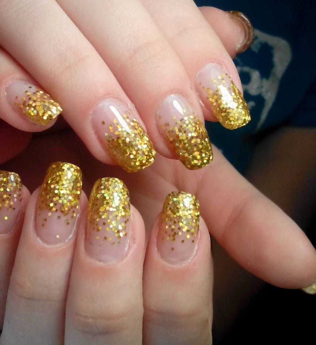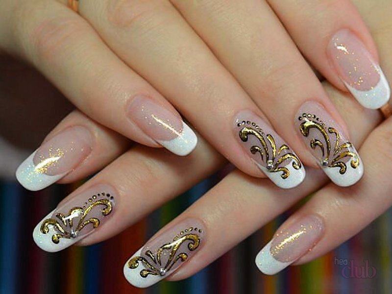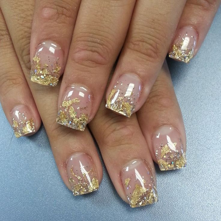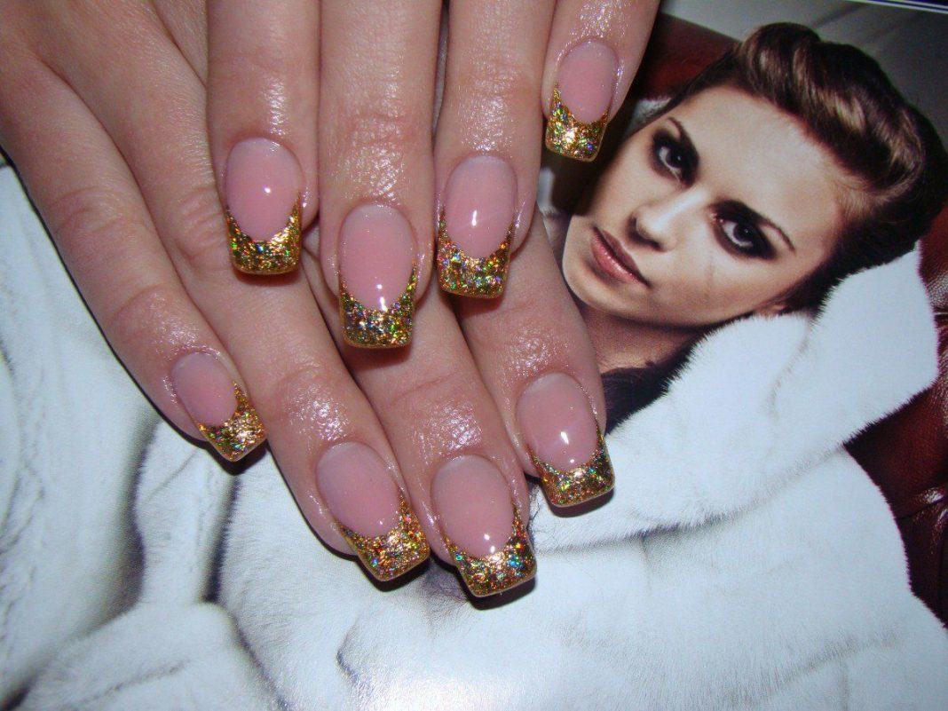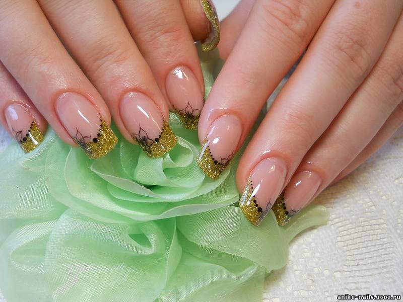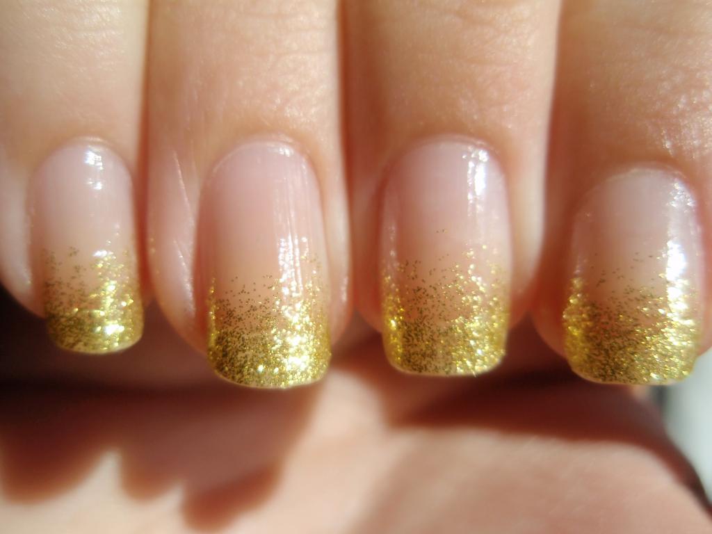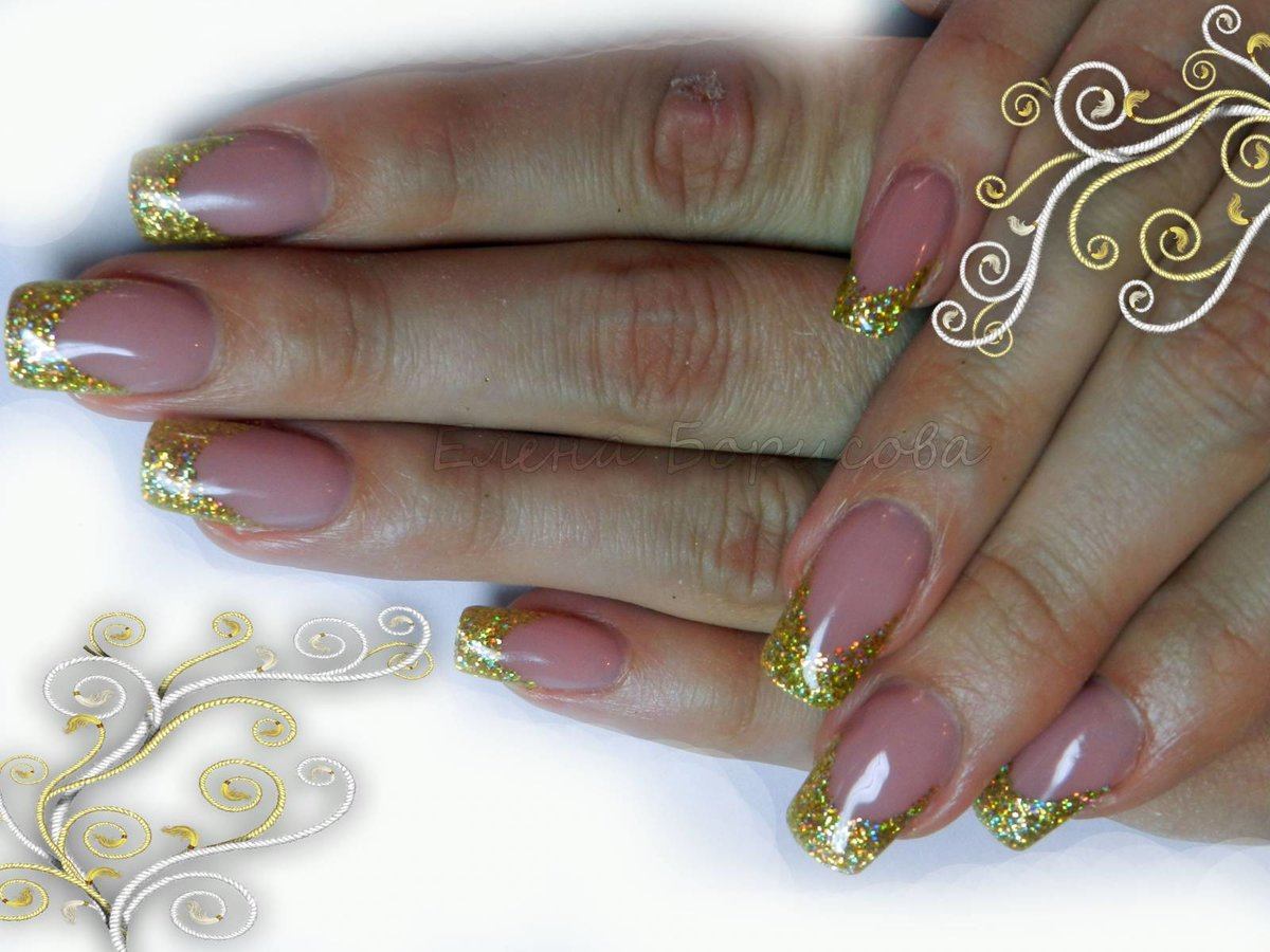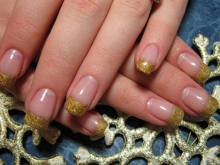 Récemment, la manucure graduée est considérée comme le summum de la mode. De plus, il comporte un assez grand nombre de variations. L'un des plus populaires est l'étirement de l'étincelle dorée. Manucure française dans ce style n'a pas de difficultés particulières. Dans l’ensemble, vous devez mettre un peu d’étincelle sur la pointe de la plaque à ongles qui, avec une brosse, s’étend sur toute la ligne du sourire. L'essentiel est de ne pas aller au-delà de ses allées. Un des ongles, sans nom ou moyen, et vous pouvez même couvrir les deux complètement avec des paillettes. Ainsi, la manucure deviendra encore plus intéressante.