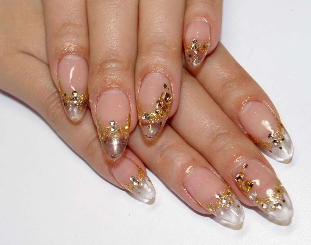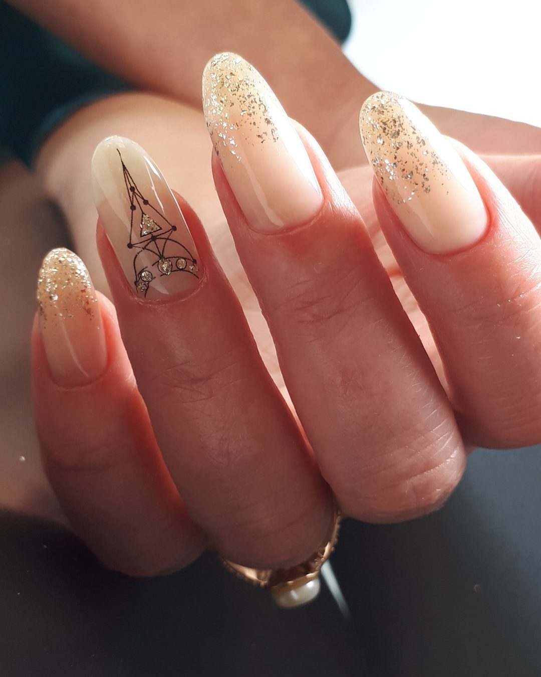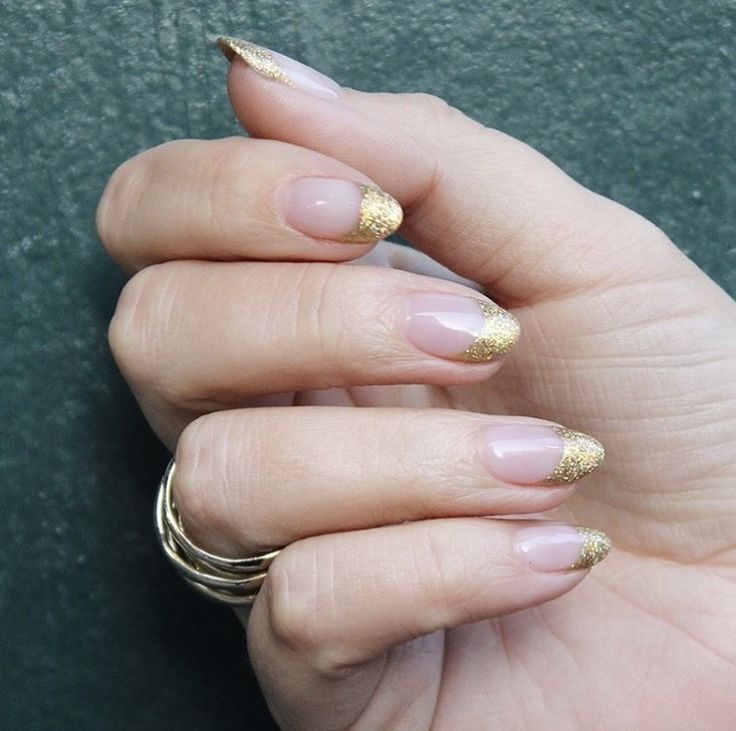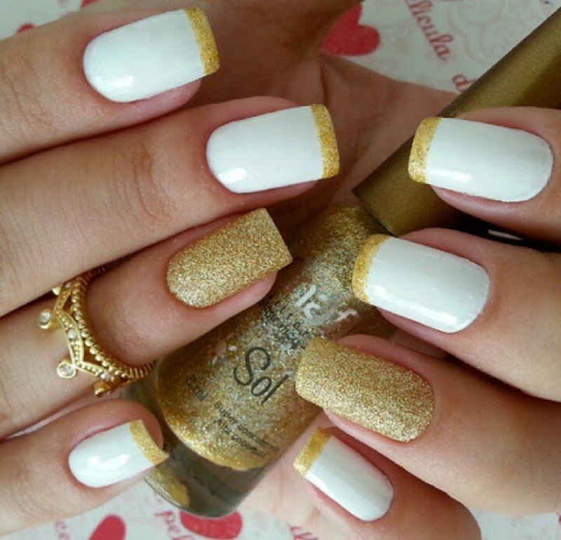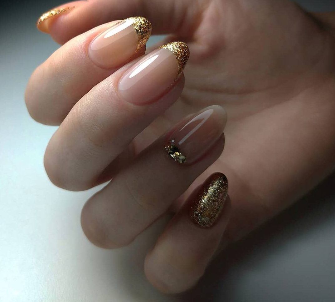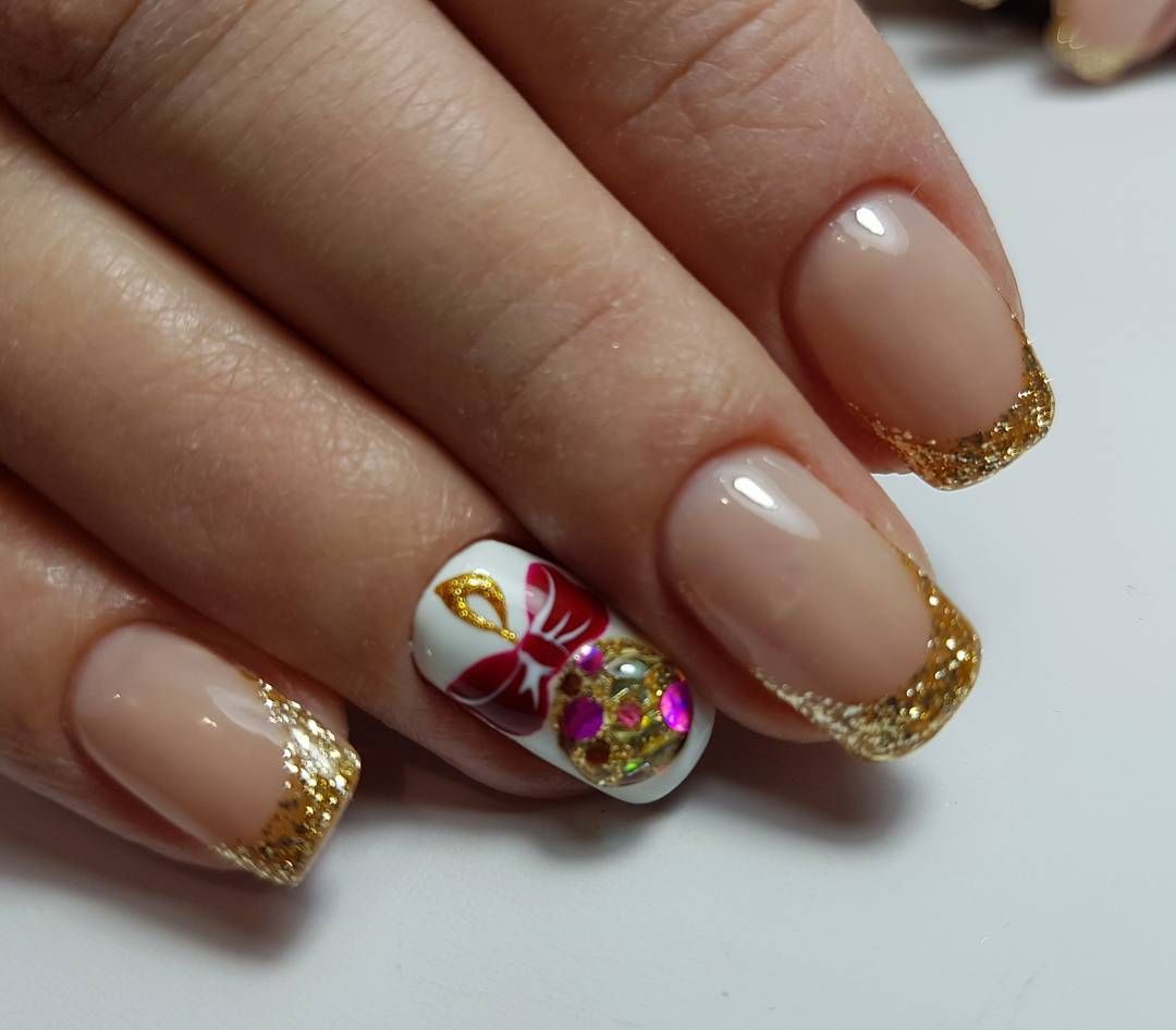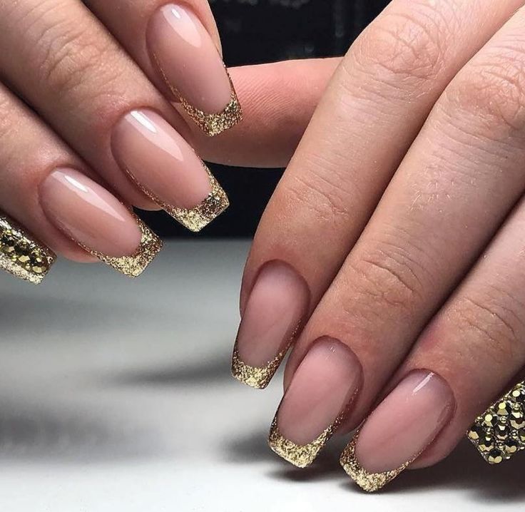 Récemment, la manucure graduée est considérée comme le summum de la mode. De plus, il comporte un assez grand nombre de variations. L'un des plus populaires est l'étirement de l'étincelle dorée. Manucure française dans ce style n'a pas de difficultés particulières. Dans l’ensemble, vous devez mettre un peu d’étincelle sur la pointe de la plaque à ongles qui, avec une brosse, s’étend sur toute la ligne du sourire. L'essentiel est de ne pas aller au-delà de ses allées. Un des ongles, sans nom ou moyen, et vous pouvez même couvrir les deux complètement avec des paillettes. Ainsi, la manucure deviendra encore plus intéressante.