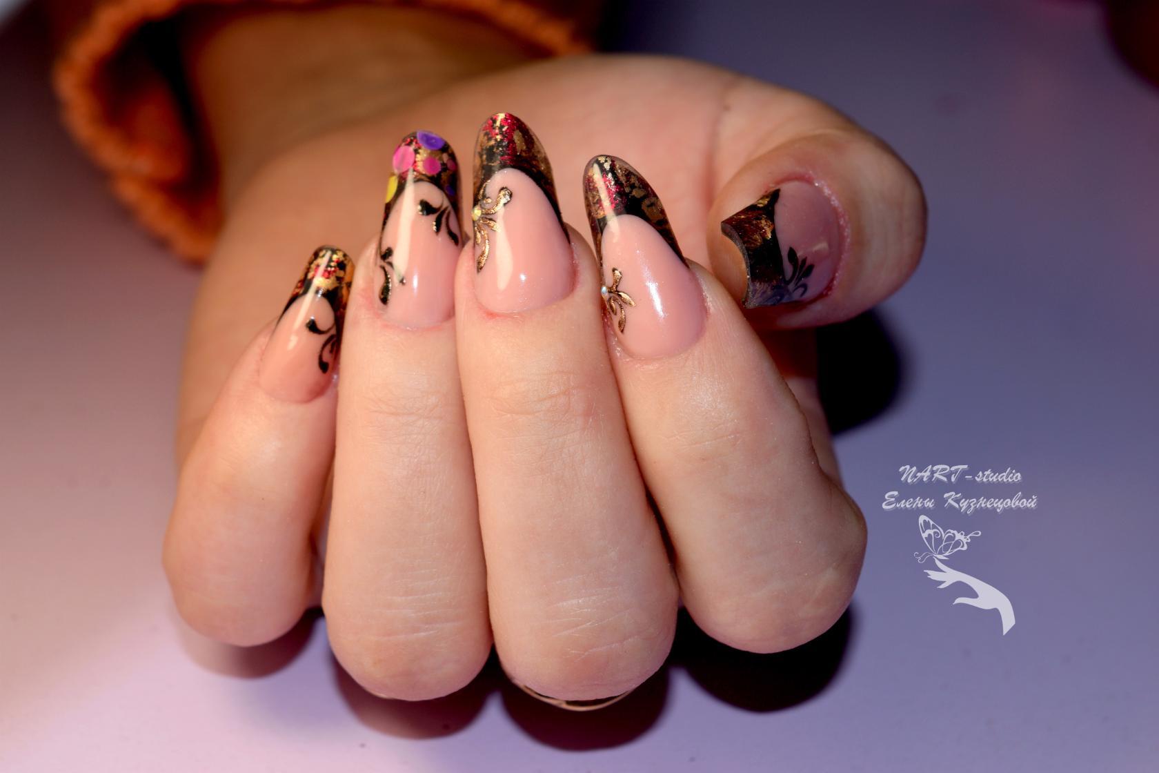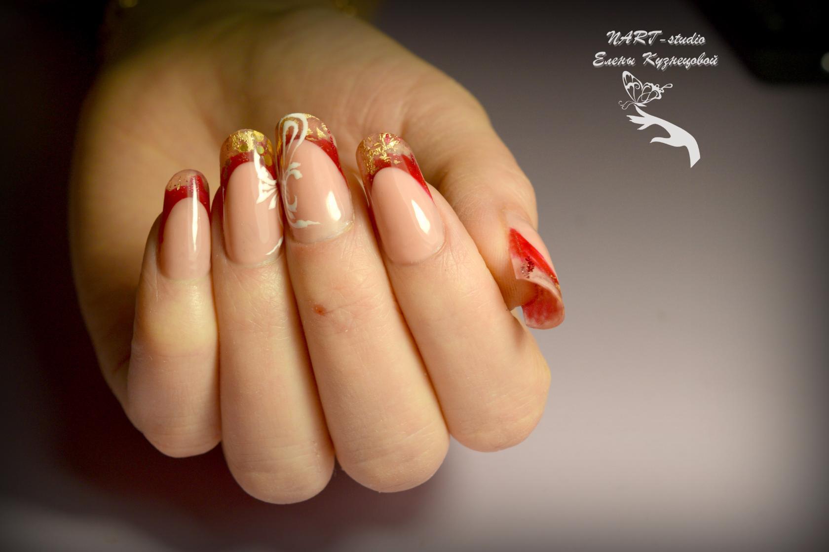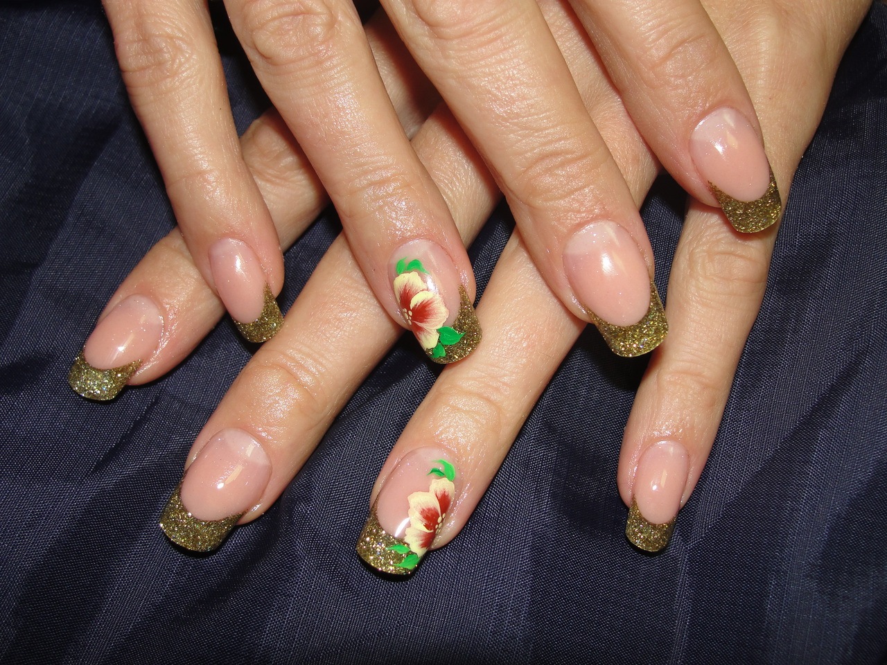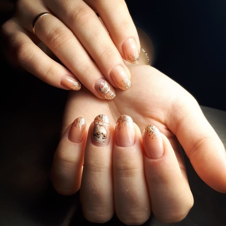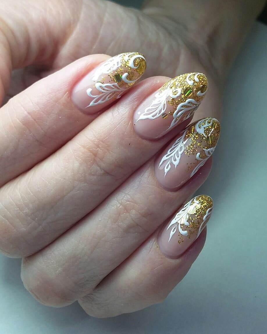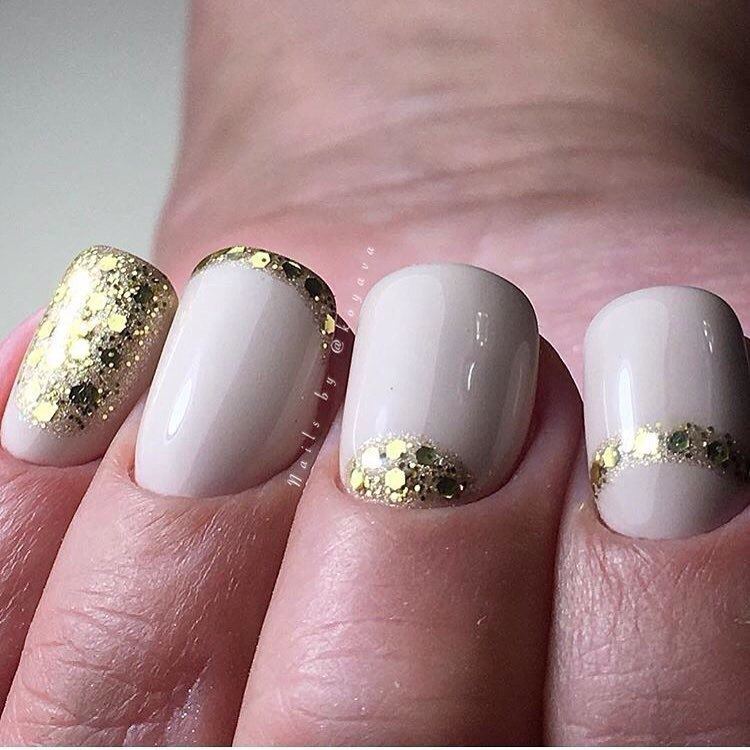 Récemment, la manucure graduée est considérée comme le summum de la mode. De plus, il comporte un assez grand nombre de variations. L'un des plus populaires est l'étirement de l'étincelle dorée. Manucure française dans ce style n'a pas de difficultés particulières. Dans l’ensemble, vous devez mettre un peu d’étincelle sur la pointe de la plaque à ongles qui, avec une brosse, s’étend sur toute la ligne du sourire. L'essentiel est de ne pas aller au-delà de ses allées. Un des ongles, sans nom ou moyen, et vous pouvez même couvrir les deux complètement avec des paillettes. Ainsi, la manucure deviendra encore plus intéressante.