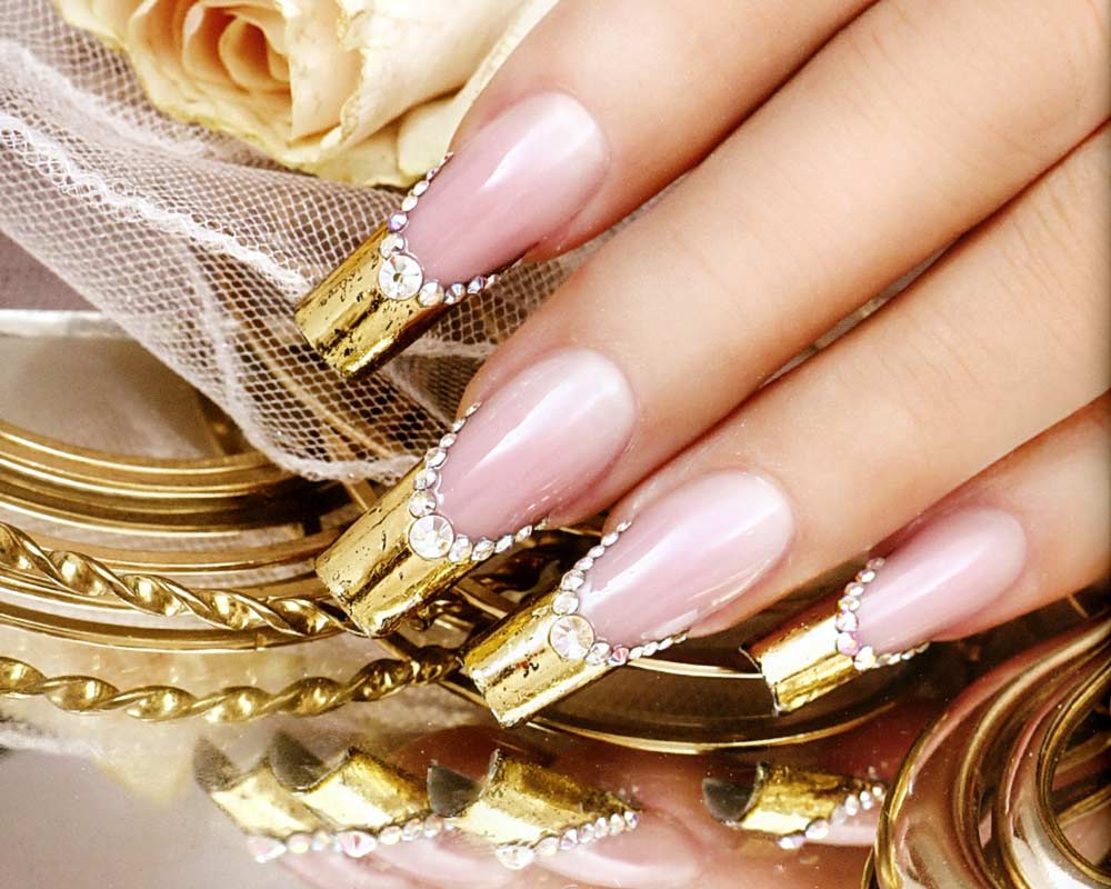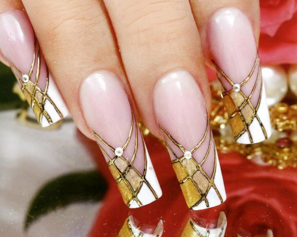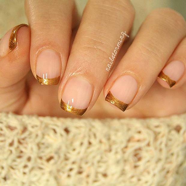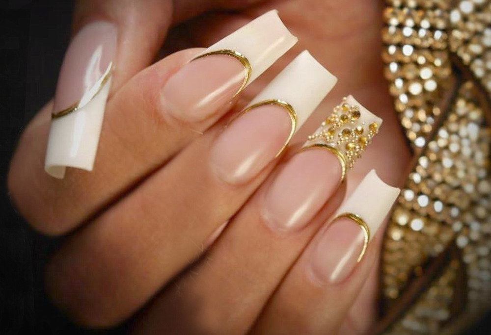 Depuis les années 70, la manucure française a tout simplement éclaté dans la mode. Mais les modeuses modernes ont commencé à s'entendre pour dire que ce type de conception des ongles est déjà dépassé. Bien sûr, la manucure française a un look très beau et soigné. De plus, il peut être utilisé pour tous les styles de vêtements. Malheureusement, l’allocation habituelle des pointes des ongles a tout simplement ennuyé les filles et il leur semble qu’il n’ya tout simplement pas d’autre option pour la veste. Les maîtres de manucure sont prêts à discuter avec cette conclusion. En effet, il existe actuellement de nombreuses techniques de manucure et des idées de décoration intéressantes. Ceci s'applique également à la manucure française. Nous proposons de discuter dans notre article de la version la plus raffinée et unique de la veste dans une teinte dorée.