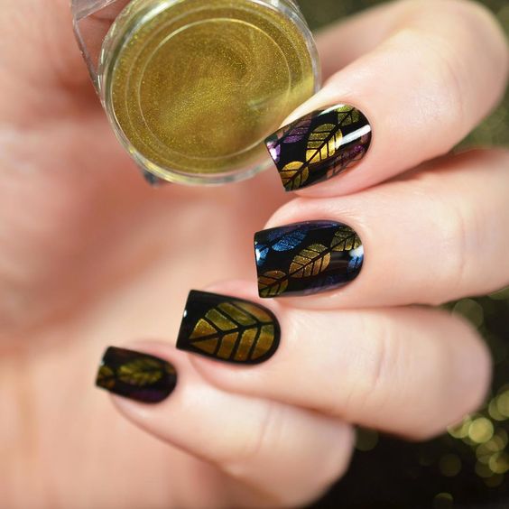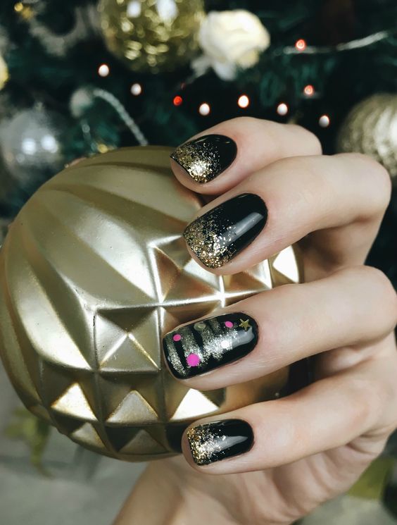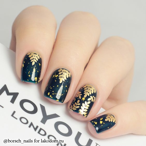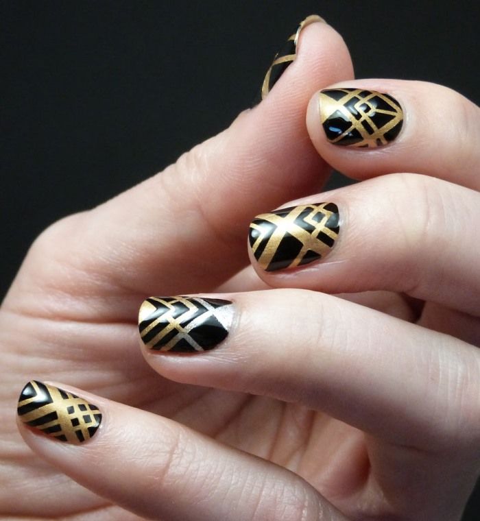 Manucure en couleur noir et or.