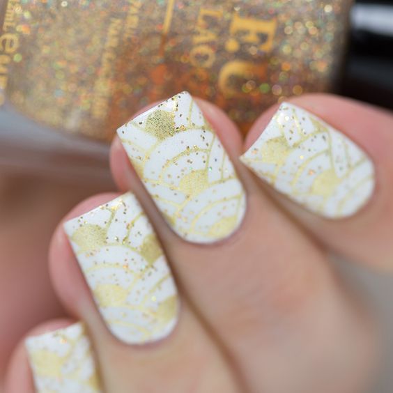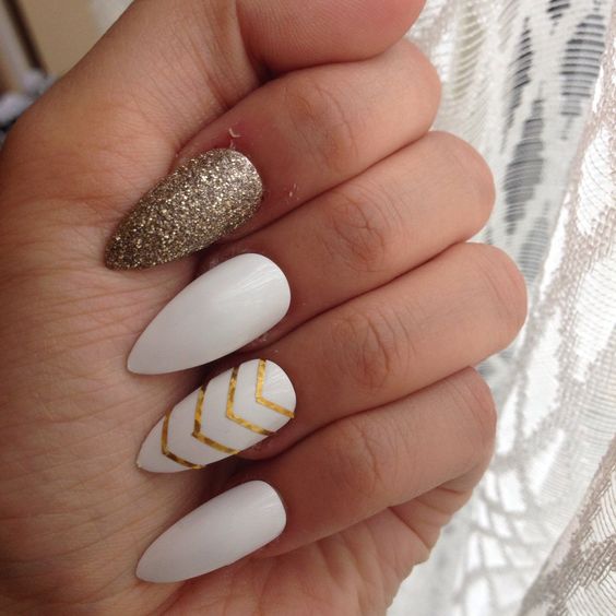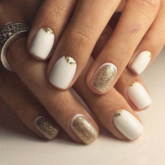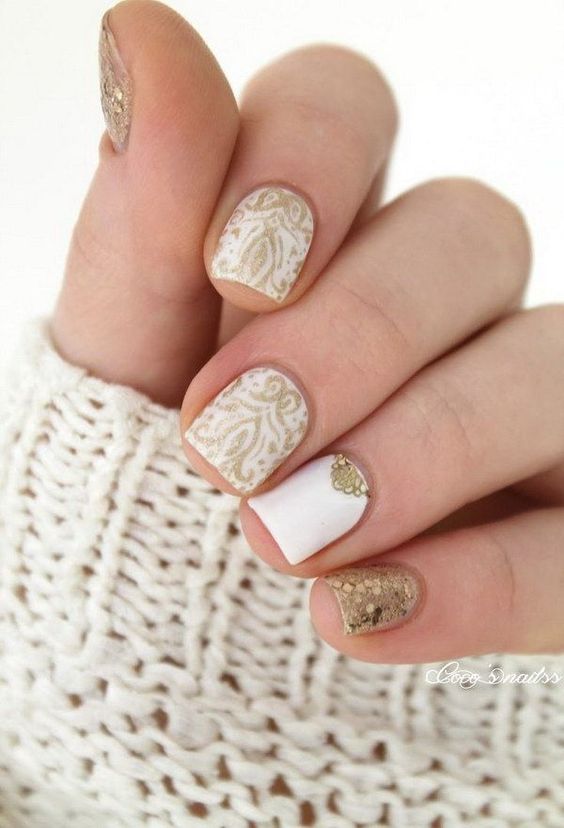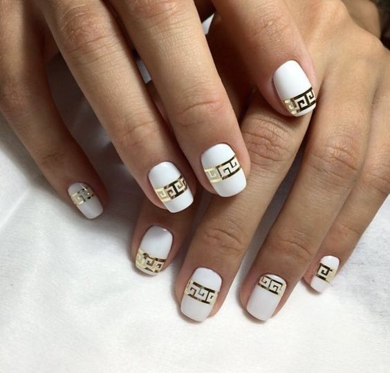 Ongles design en couleur blanche et or.