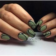 Ne pas oublier une variété d'options de conception. Le noir est une excellente alternative à la manucure française blanche classique. Dans cette performance, il n'a pas l'air moins exquis. De plus, la couleur or est souvent utilisée dans les dessins. Si vous le souhaitez, vous pouvez même créer l’effet d’une peau de crocodile. Dans la conception des soucis, c'est une décision audacieuse qui ne convient que pour les filles qui n'ont pas peur d'être à l'honneur.