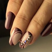 De plus, vous pouvez choisir absolument n'importe quelle nuance de rouge, même de vin ou d'écarlate. En combinaison avec de l'or, chacun d'eux aura l'air vraiment luxueux. Soit dit en passant, le vernis ne doit pas nécessairement être de l'or. N'hésitez pas à choisir des strass dans cette nuance, scotch tape ou même décalcomanies.