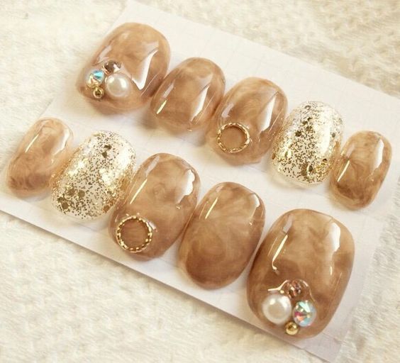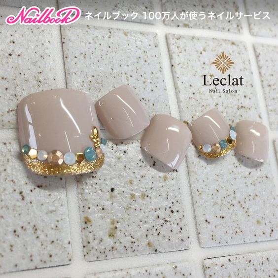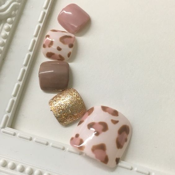 Combinaison harmonieuse de vernis de différentes nuances dans une pédicure dorée