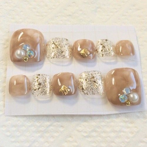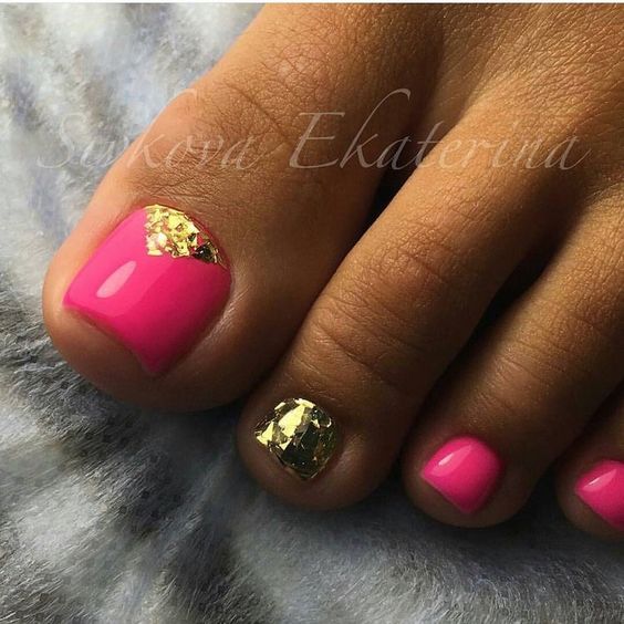 Les pédicures dorées sont de préférence choisies par les femmes à la peau bronzée foncée. Ils essaient toujours de porter des chaussures ouvertes pour montrer toute la luminosité du pédicure doré. Le placage à l’or est très exigeant et de mauvaise humeur. Par conséquent, choisissez-le comme teinte de base pour un pédicure à la mode, soyez prudent. Pour commencer, il est important de faire la pédicure parfaite pour que vos jambes soient parfaites. Et seulement après l'application d'un revêtement de vernis d'or.Si nous considérons la pédicure du point de vue des options estivales, nous pouvons comprendre que la pédicure sur le podium et la pédicure des modeuses des réseaux sociaux sont deux choses différentes. Beaucoup des idées suggérées méritent une attention particulière, y compris une pédicure dorée. Malheureusement, la variété de ce type de clou est un peu boiteuse. Une couche continue de vernis d'or semble trop pathétique et même ennuyeuse. Ce n'est pas approprié partout et pas toujours. Avec l'aide du mica d'or pour la conception du verre, il est intéressant de diversifier la pédicure en or.